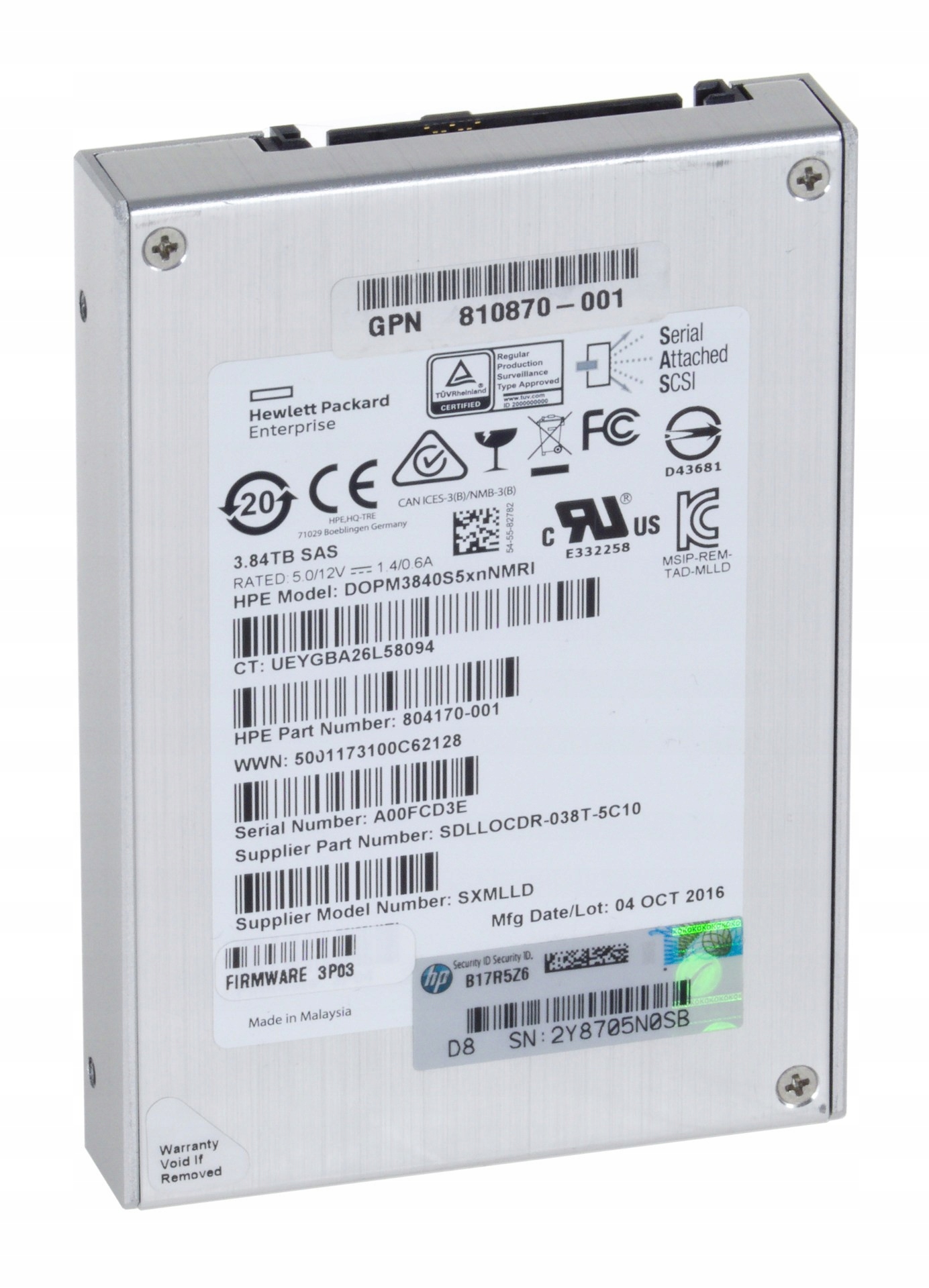 SSD Sandisk HP 3.84TB 2.5 "SAS 6GB SXMLLD SDLLOCDR-038T-5C10 804170-001