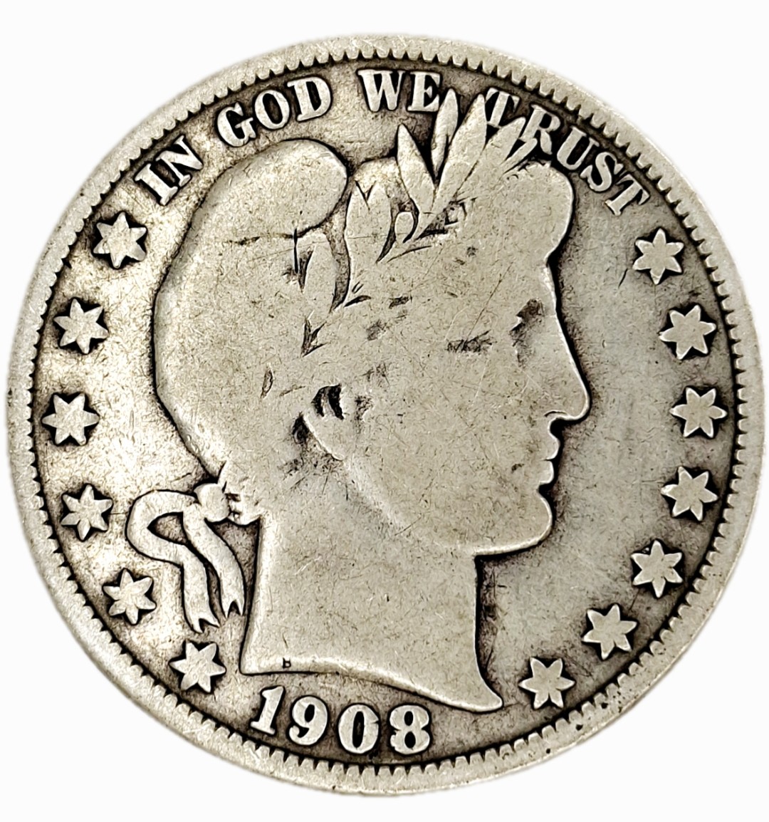 США - Перукарня півдолара - 1908 O - Висока якість