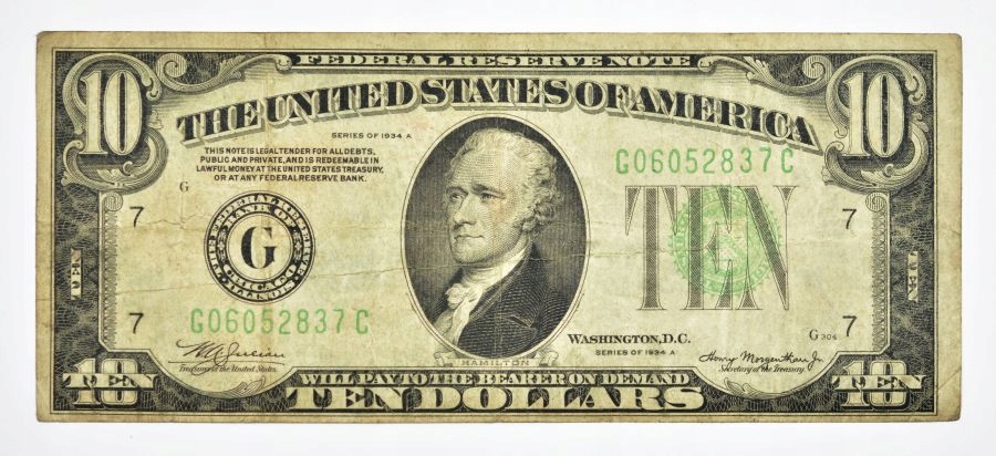 США 10 доларів серії 1934 A Green G06052837c