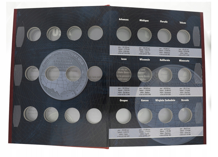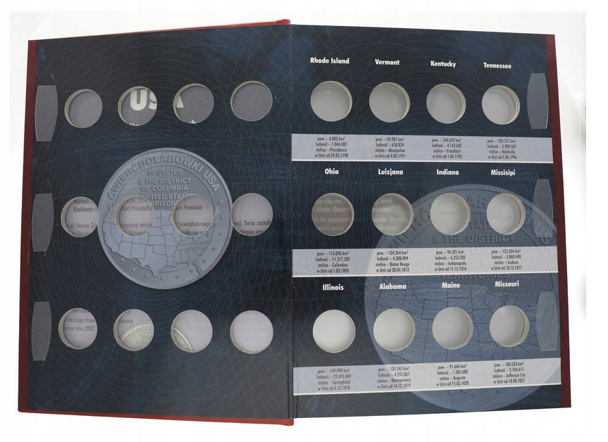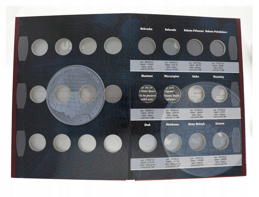 Внутрішній простір для 56 монет, з короткими історичними нотами.