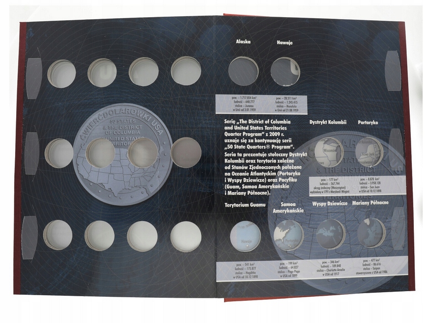 монети в спеціальних, вирізаних отворах, захищені з двох сторін смужками фольги. Неможливо, щоб монета випав з альбому.