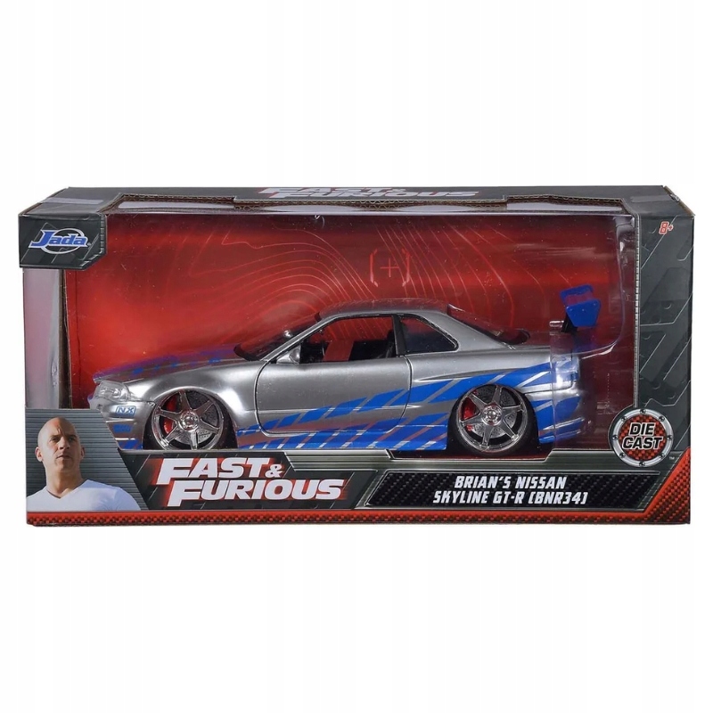 Цей автомобіль для колекціонування металу в масштабі 1:24 є точною копією Nissan Skyline GT-R R34 2002 року, культового автомобіля, яким керував знімач фільму Брайан О’Коннер.
