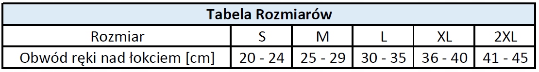 Наявність ремінця різних розмірів (S-XXL). ) дозволяє кожному користувачеві налаштувати виріб відповідно до своїх індивідуальних потреб і розмірів руки вище ліктя.