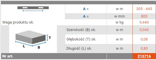 - Діапазон регулювання (довгастий отвір) від 305 мм до 445 мм