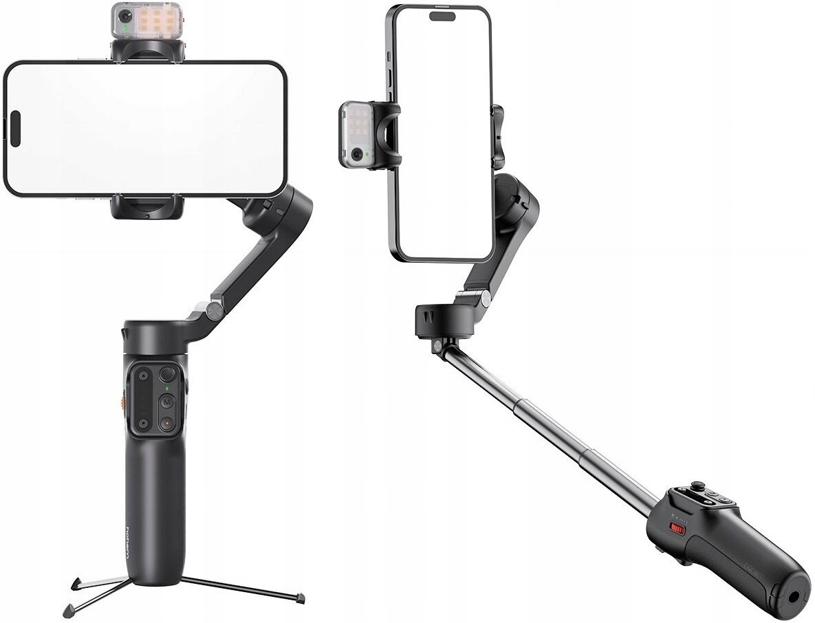 3-осі стабілізатора з прикріпленим пультом дистанційного керування-це чудове рішення для людей, які хочуть захопити унікальні моменти плавно і стабільно. Можливість дистанційного керування не тільки гімбал і підключена по телефону, але й із світлодіодною лампою є великою перевагою, особливо в контексті фотографування та відео з селфі, де точне обрамлення має вирішальне значення. Крім того, магнітне кріплення пульта дистанційного керування забезпечує зручність та практичність, а низьке споживання енергії усуває необхідність частого зарядки акумулятора. Штатив у відставці - чудовий інструмент для фотографування та фільмів. Пропозиція розширення, серед інших Можливість зйомки та фільми з висоти, що дозволяє отримати унікальні перспективи. Кріплення смартфона в стабілізаторі як горизонтально, так і вертикалі.