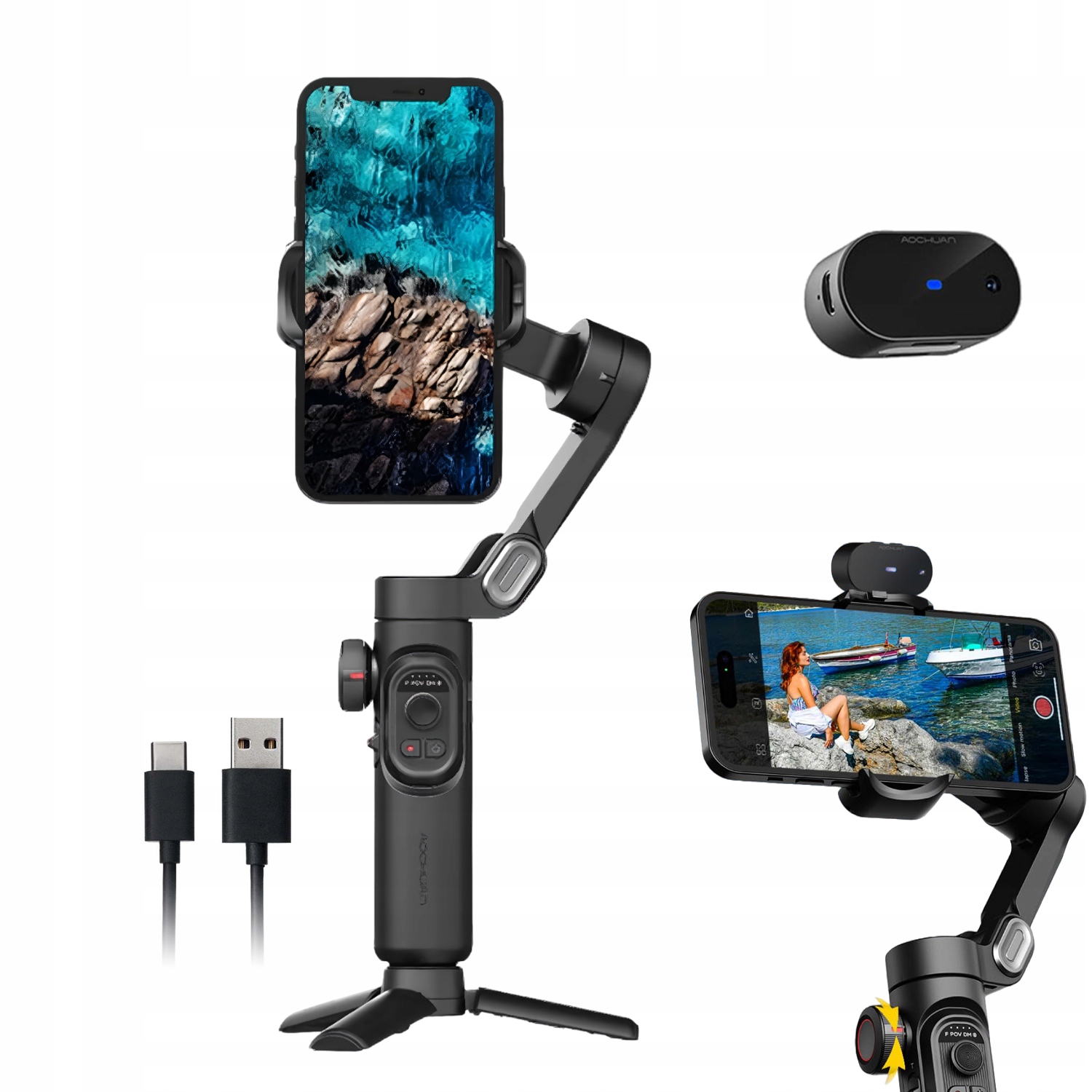 - - Завдяки розширеному модулі AI, Gimbal Aochuan Smart XE забезпечує інтелектуальне відстеження обличчя без необхідності використання програми. Система алгоритму AI забезпечує стабільність записів і не втрачає відстежений об’єкт, який дозволяє професійний запис фільмів на IG, YouTube, Tiktok, Facebook та інших платформах. 📱