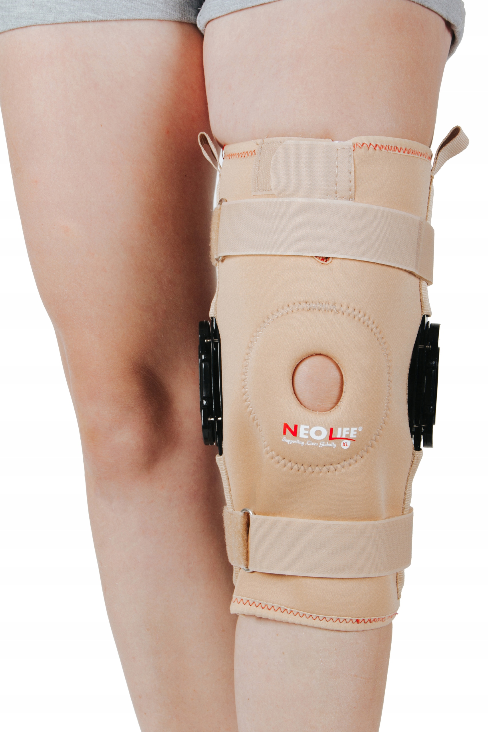 Наколінник з подвійним годинником. Ідеально стабілізує, зміцнює, захищає і зігріває суглоб, покращує кровообіг.Бічні підсилення з шарнірами забезпечують повну поперечну стабілізацію коліна.>, аполіцентричні годинники забезпечують поздовжній контроль і захищають від гіперекстензії. > Додаткові гнучкі посилення забезпечують максимальну стабілізацію суглоба. Стабілізатор рекомендується при захворюваннях менісків і зв'язок, нестабільності колінного суглоба, гіперекстензії, після реконструкції зв'язок: LCL, MCL, ACL, під час посттравматичної реабілітації (наприклад, після розтягнень, пателлофеморального конфлікту).