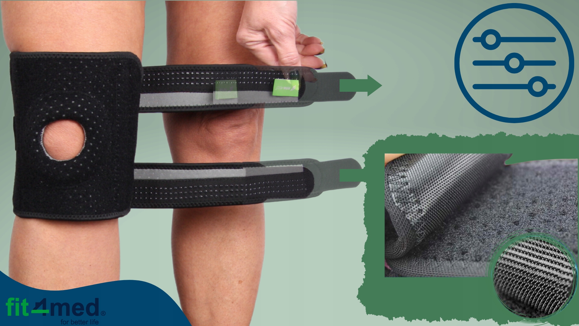 ➡️Стабілізатор колінного суглоба та колінної чашечки з чотирма бічними стабілізуючими кісточками FIT4Med