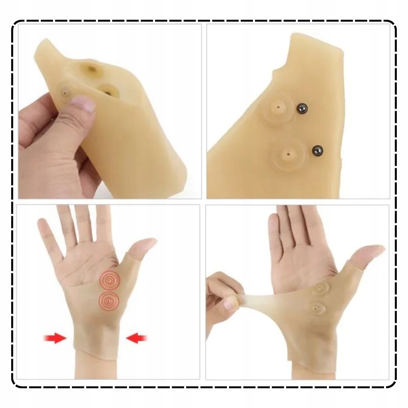 Магнітний браслет містить чотири магніти, які допомагають зняти біль і набряк, а також покращують кровообіг. Ці ремінці легко одягати, їх можна носити під час повсякденних справ і під час сну.