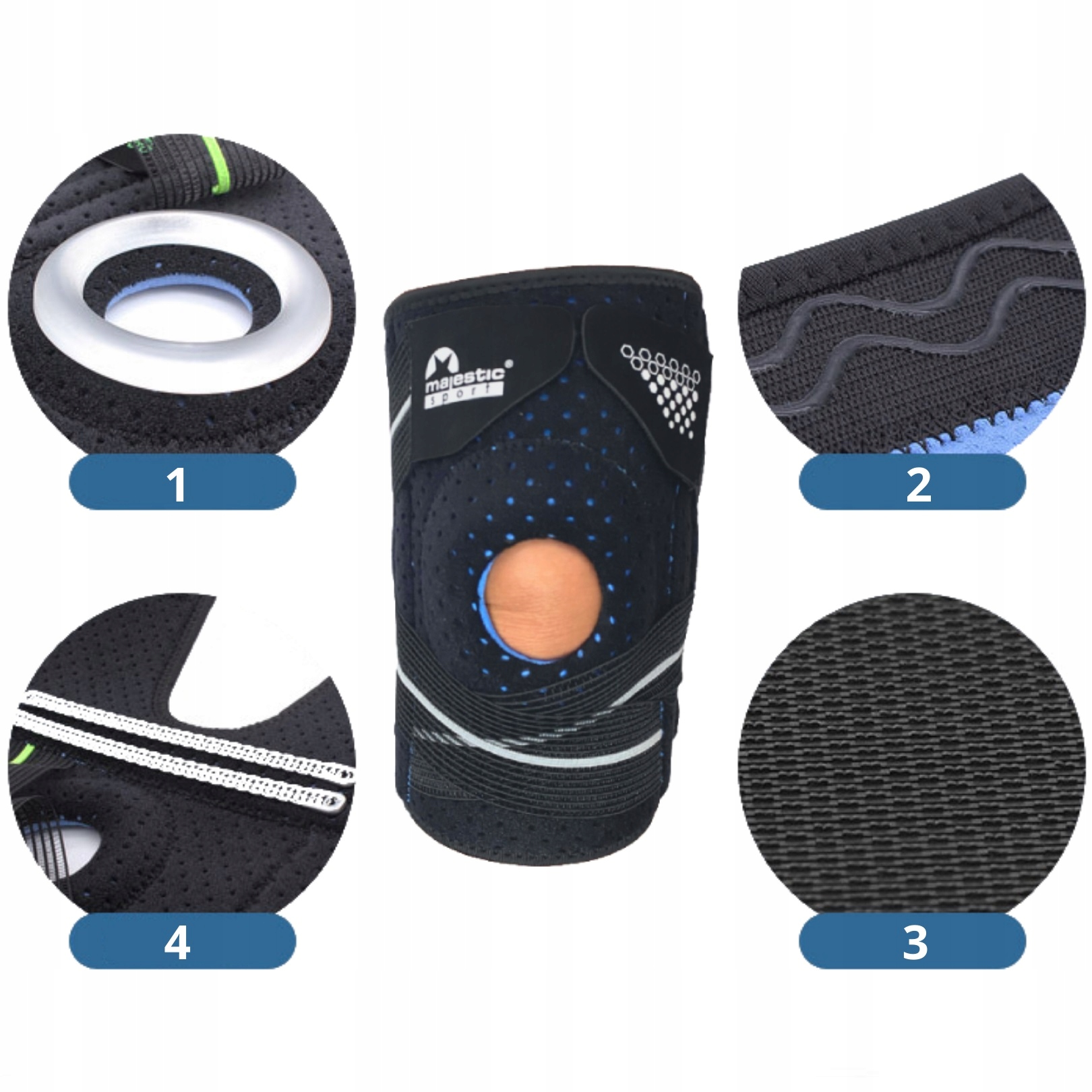 ❗ Стабілізатор застібається на дві широкі липучки, завдяки яким можна регулювати окружність і ступінь натискання. Спеціальна відкрита конструкція та два еластичних ремені забезпечують належну підтримку надколінка. Крім того, уздовж бандажа вшиті чотири стабілізуючі пружини, які перешкоджають бічному повороту коліна. Стабілізатор Majestic Sport підходить як для правого, так і для лівого коліна.