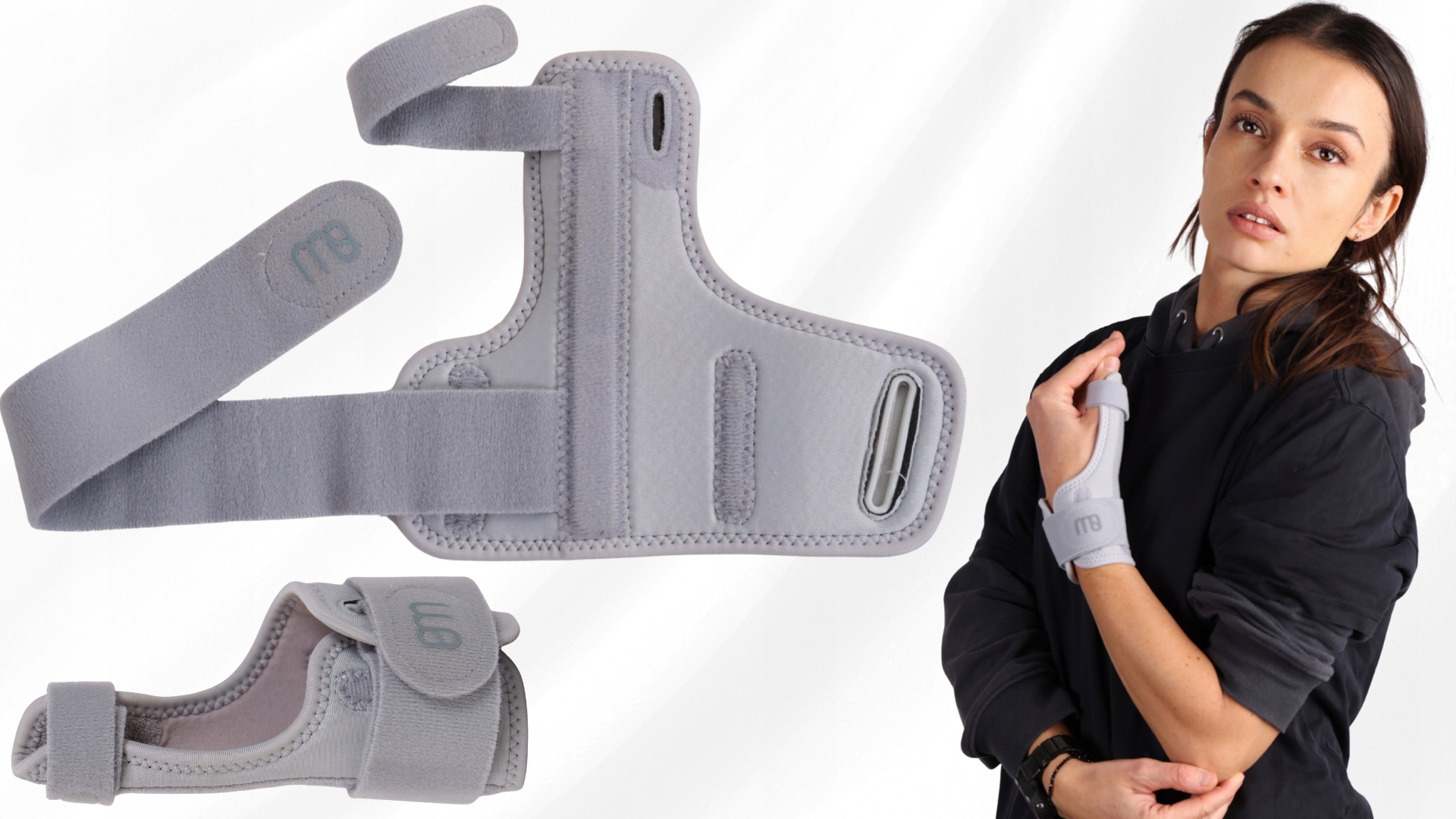 - Подвійні еластичні опори - посилена стабілізація - Ортез має дві вбудовані гнучкі опори - одну вгорі, а іншу внизу на зап'ясті, завдяки чому він забезпечує рівномірну підтримку великого пальця і кисті, утримуючи їх у правильному положенні, і в той же час забезпечує природні рухи під час повсякденних діяльності.