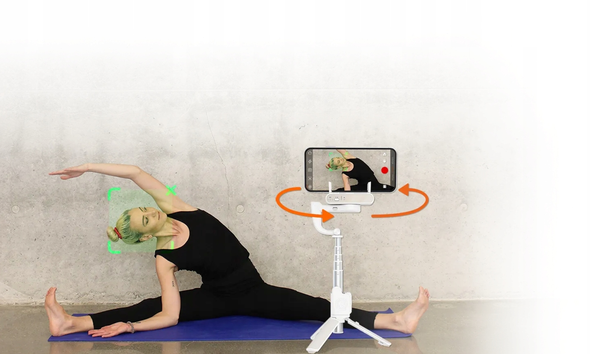 isteady Q може слідувати за обличчям, і завдяки обертанню 360 ° буде слідувати за вами в кожному напрямку! Функція працює навіть тоді, коли ви перебуваєте в русі, тому Gimbal буде ідеальним супутником під час поїздок або під час спорту.