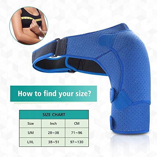 - Заспокоює травми, напругу та пошкоджені м’язи, замерзлі плечі. Ефективний стабілізатор плеча для лікування та профілактики травм плеча. Менша вага допомагає полегшити біль, спричинений розтягуванням або розтягуванням плеча