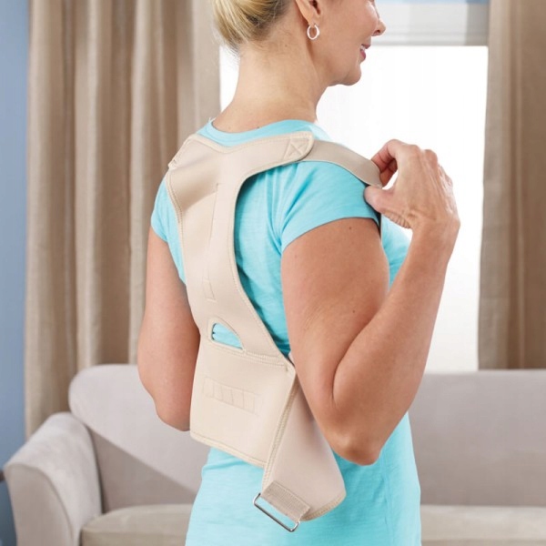 Революційний бандаж для підтримки спини допомагає виправити неправильну поставу. Руки і спина прямі. Це може допомогти полегшити біль у шиї та м’язах. Завдяки плечовим ременям і застібці на липучці його можна зручно підлаштувати під своє тіло. Ідеальна підтримка для непомітного носіння під одягом. Якість: 70% неопрен, 30% поліестер.