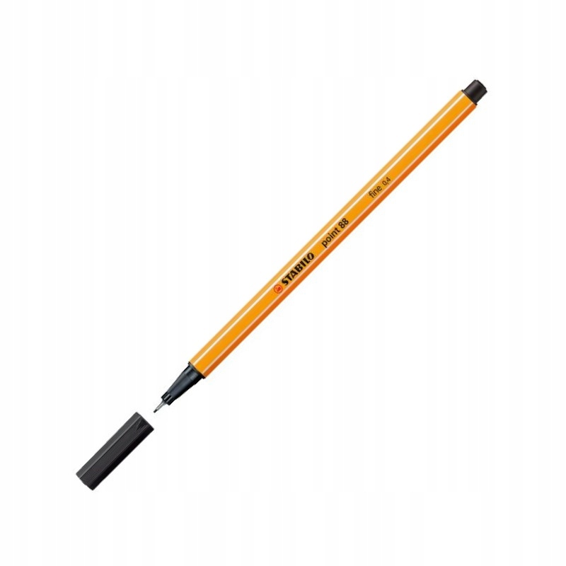 Stabilo Point 88 -найпопулярніший тонкий автор Європи. Ідеально підходить для написання, малювання, підкреслення, забарвлення та роботи з правителем. Він доступний у 47 кольорах, завдяки якому він також підходить для створення карт думок та барвистих нот, які полегшують запам'ятовування. Сильна, обрамлена наконечника стійка до переломів та стратифікації, що гарантує високий комфорт письма, поки туш не буде вичерпана. Додатковими перевагами є стійкість до висихання (зліва без куртки тривалий час не висохне) і вентиляційна шапка, яка у випадку її раптової ластівки захищає від задухи. Товщина лінії для написання 0,4 мм. Чорний.