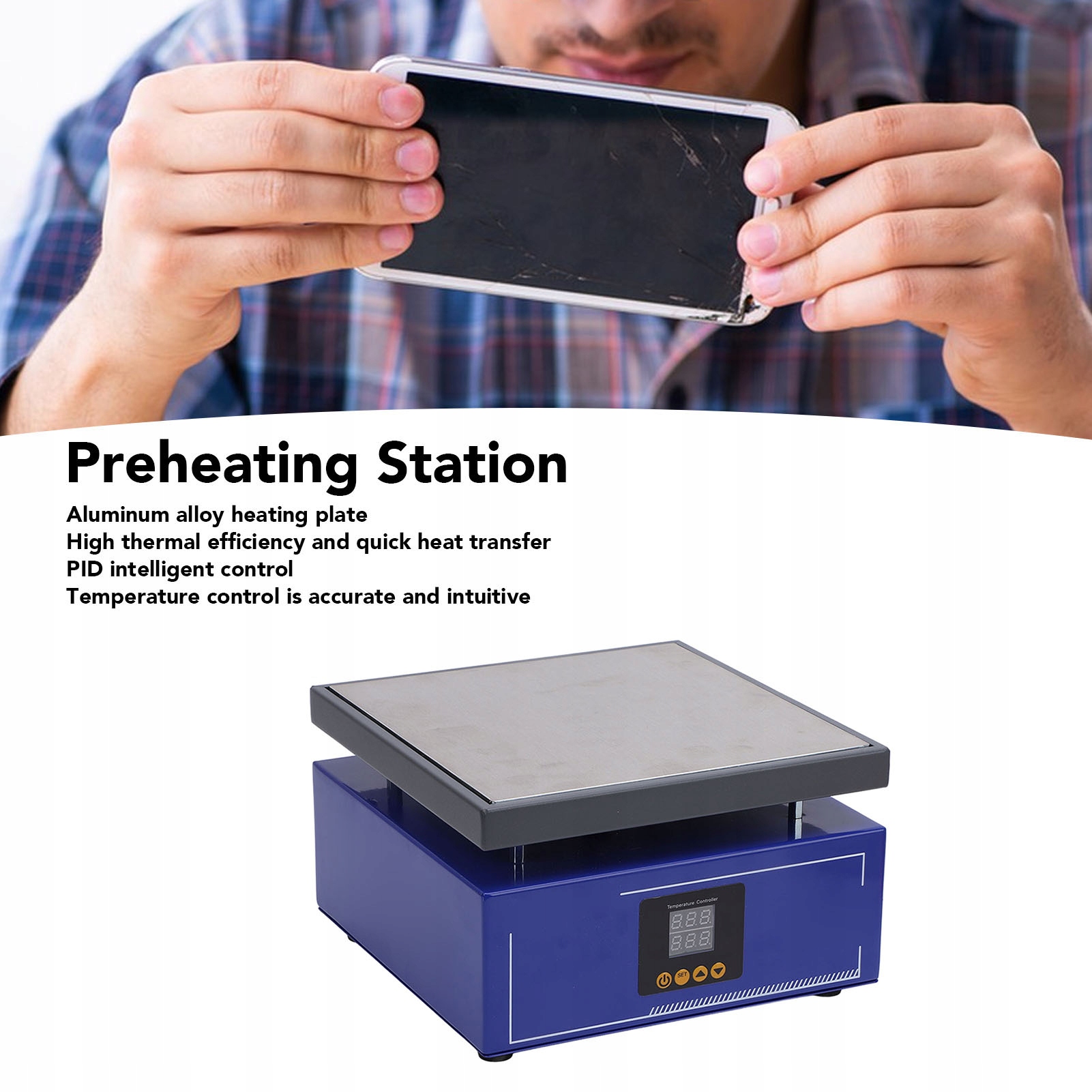 Розмір нагрівального столу: прибл. 200 x 200 мм / 7,87 x 7,87 дюйма