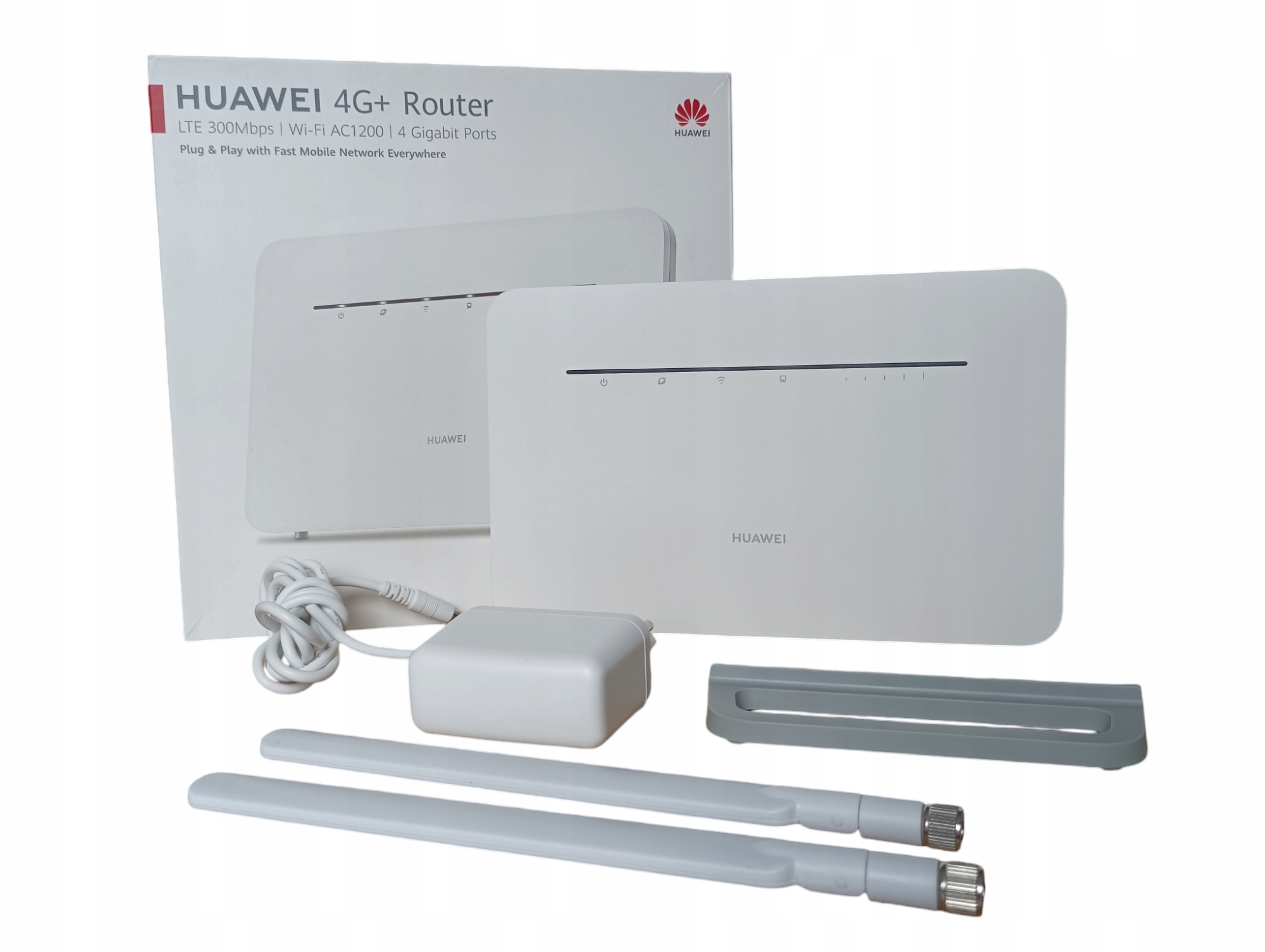 В набір входить: роутер b535-235, оригінальна підставка, ОРИГІНАЛ HUAWEI БЛОК ЖИВЛЕННЯ , дві антени.