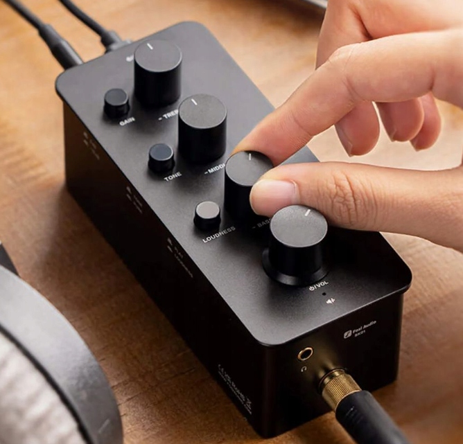 Fosi Audio оснастила SK01 трьома ручками для апаратного регулювання низьких, середніх і високих тонів. Це дозволяє самостійно підлаштовувати окремі частини смуги під власні уподобання або характеристики підключених навушників. Функцію еквалайзера можна швидко вимкнути за допомогою спеціальної кнопки - перемикання з режиму «Tone» в «Pure».