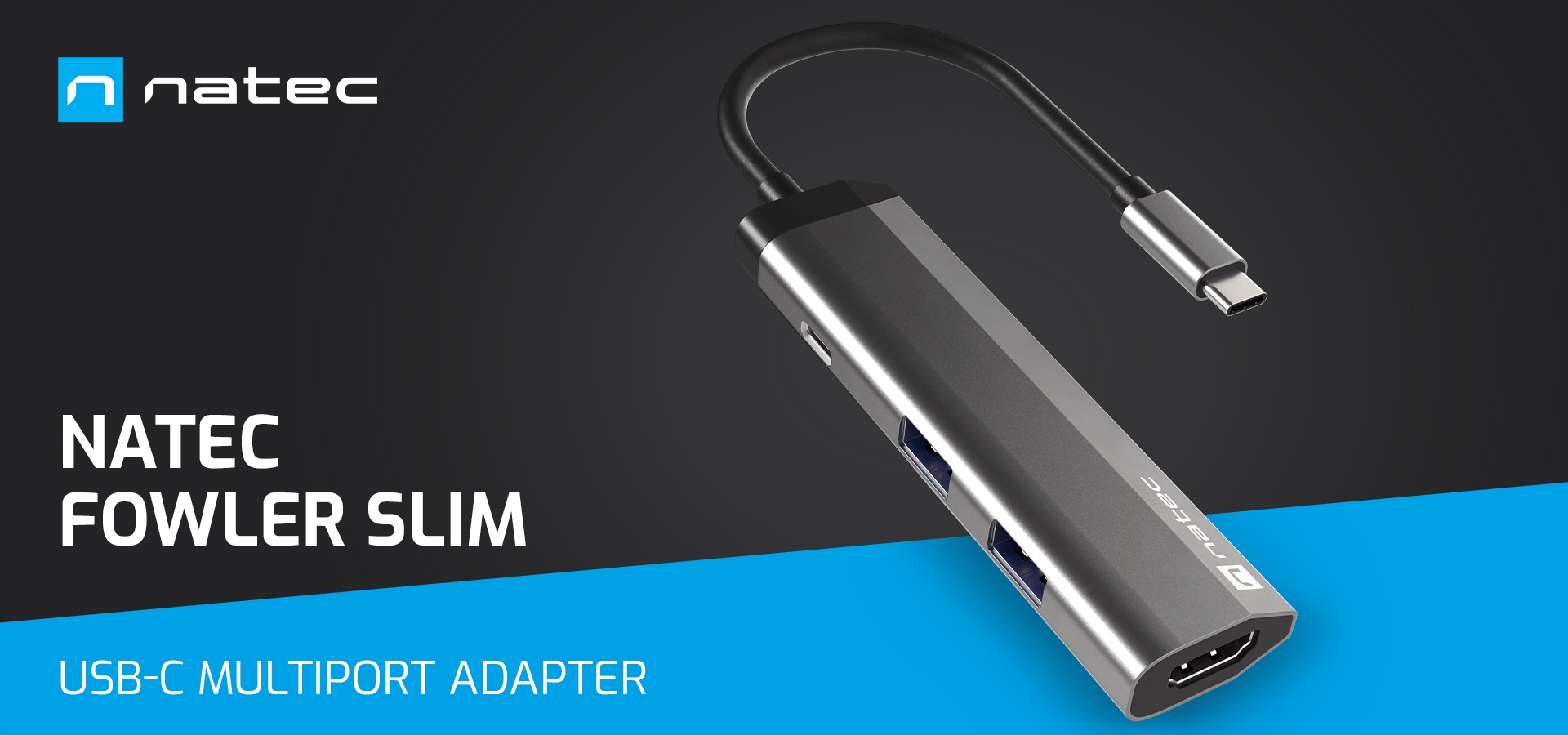 Stacja dokująca USB Natec Fowler Slim Multiport USB-C PD, 2x USB 3.0, HDMI
