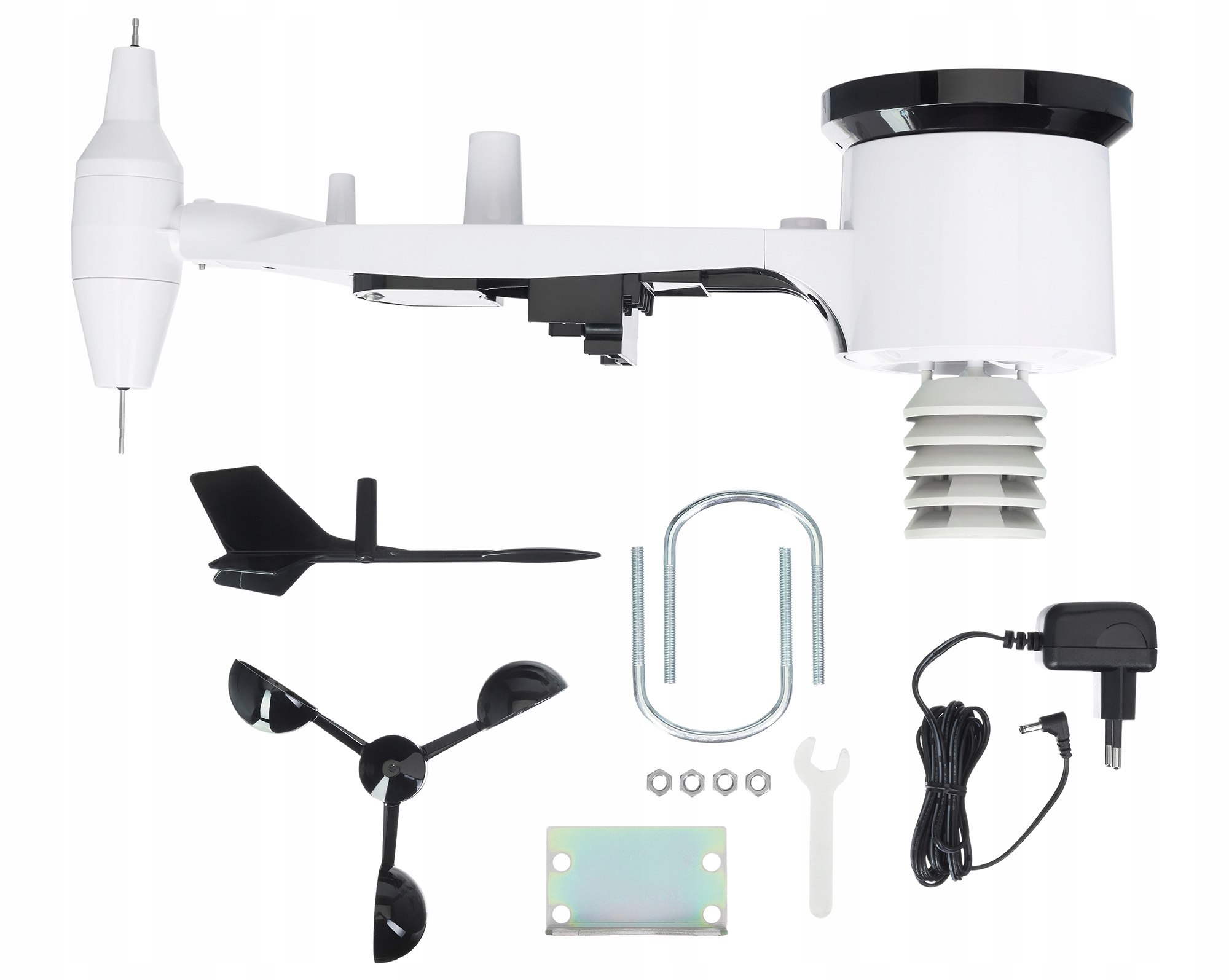 - Вимірює температуру, вологість повітря, тиск, кількість опадів та інтенсивність освітлення, УФ-індекс, швидкість і напрям вітру