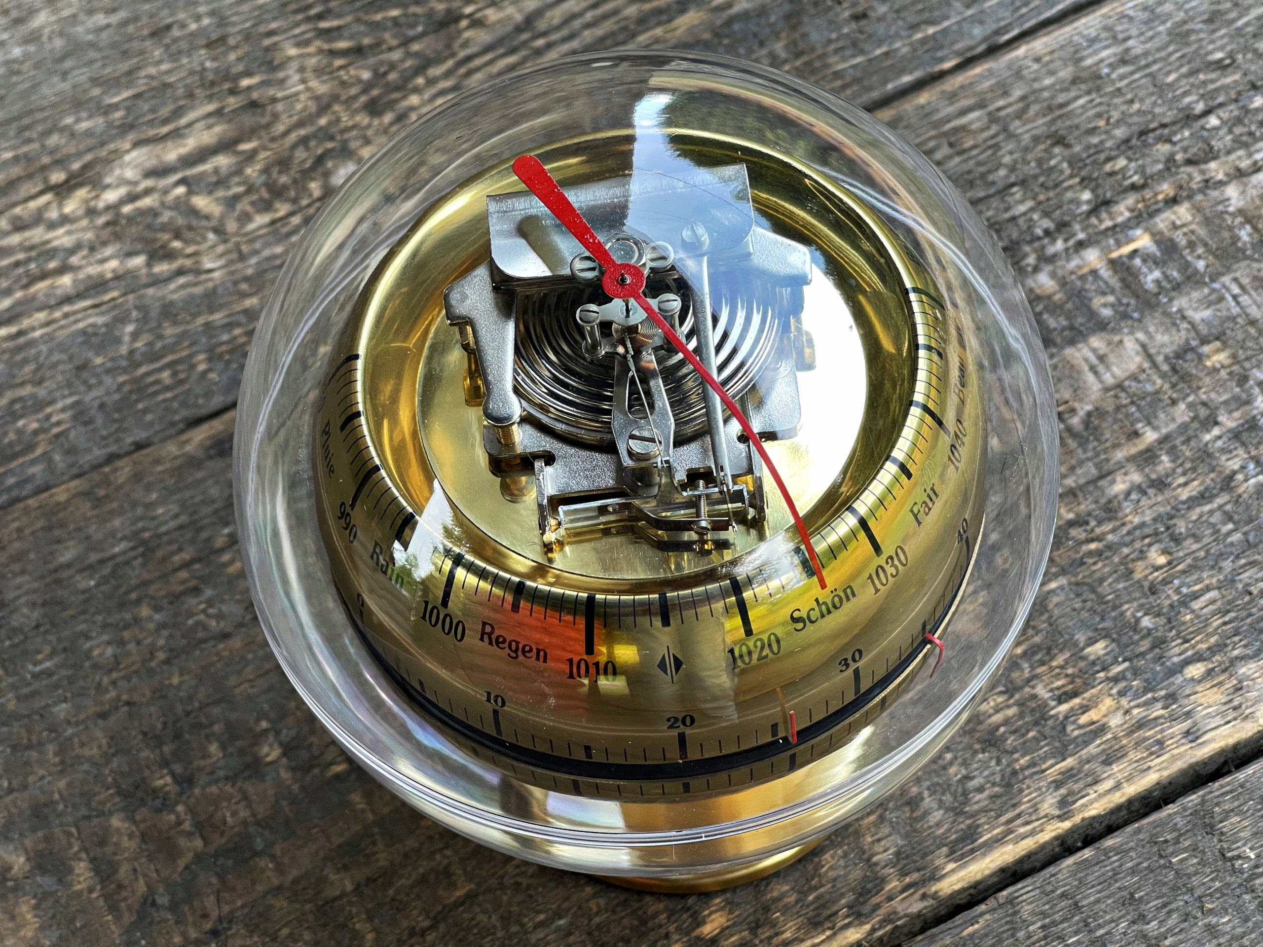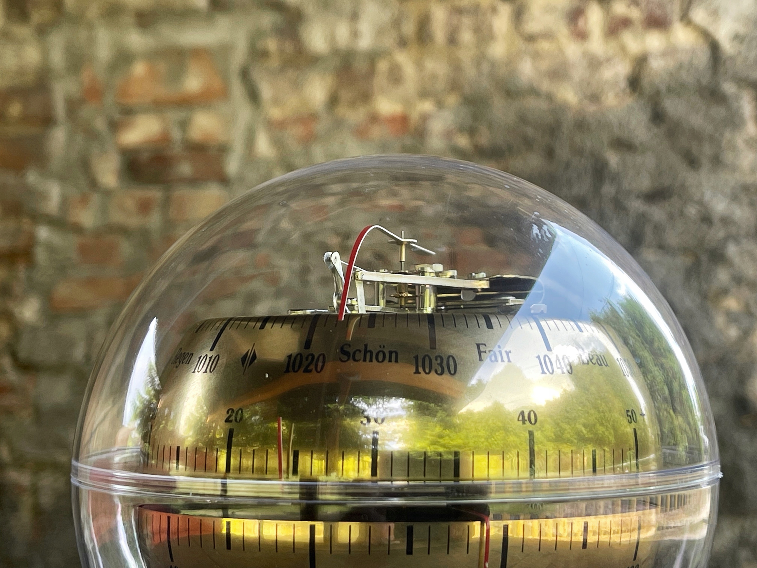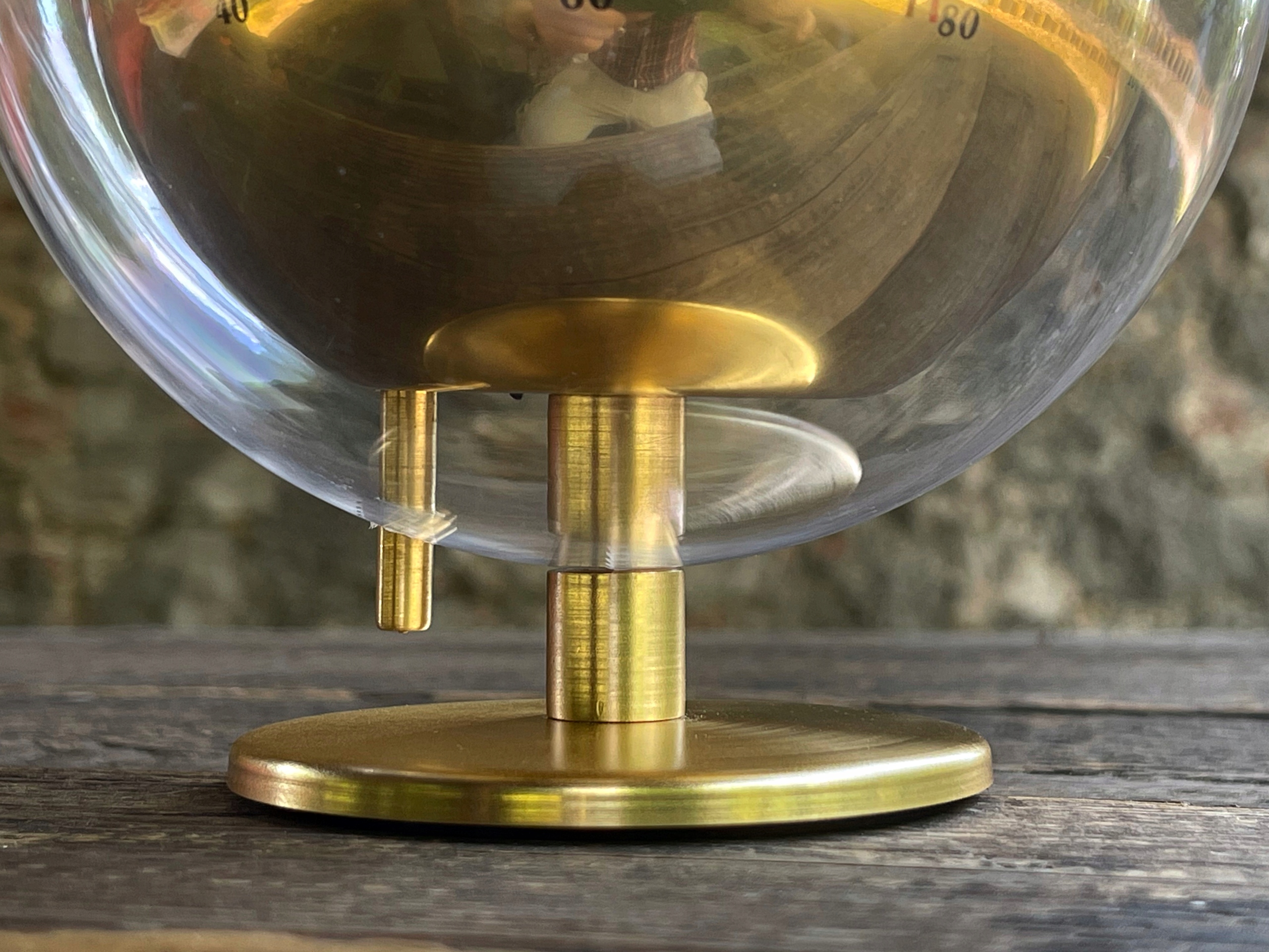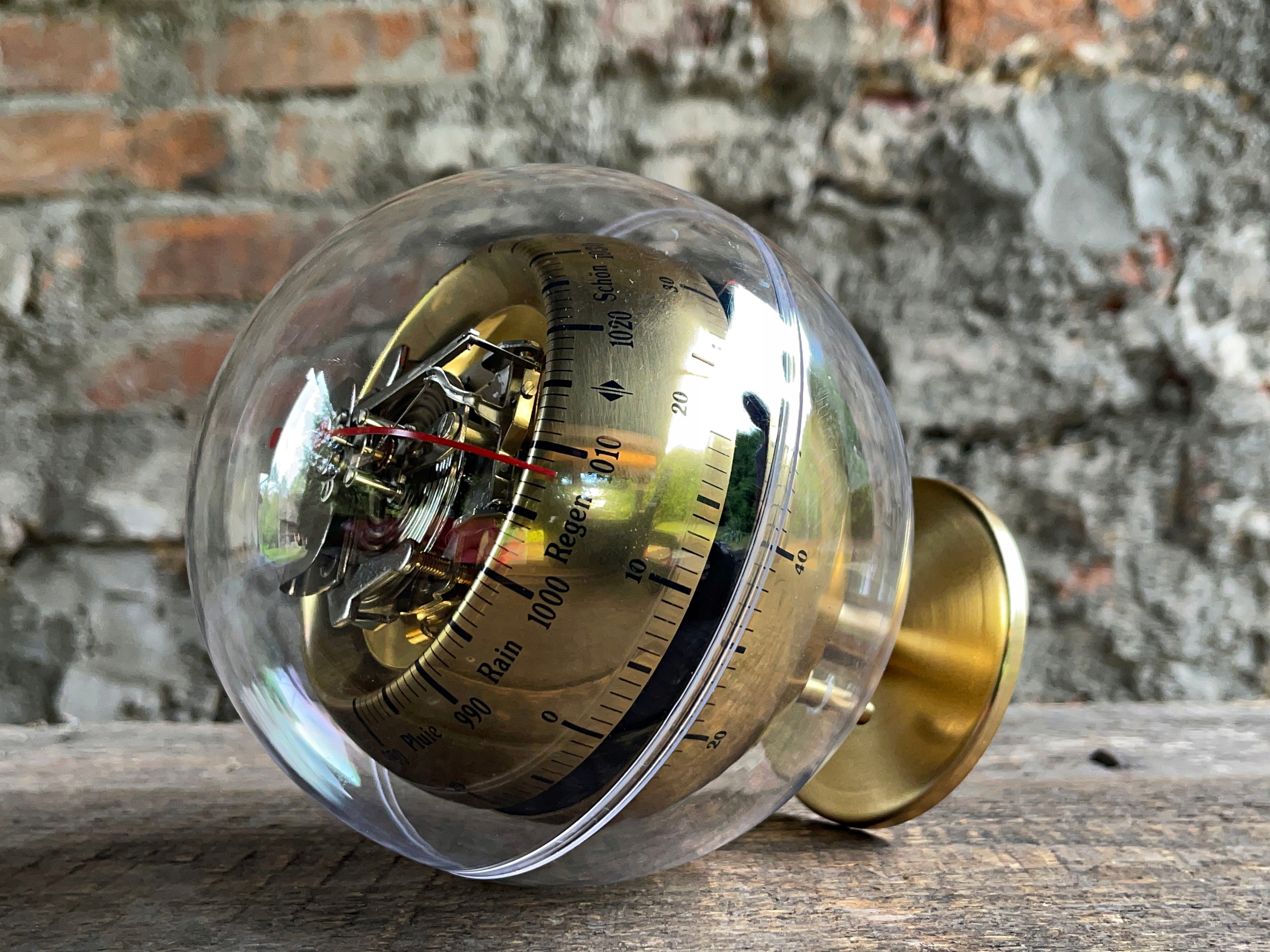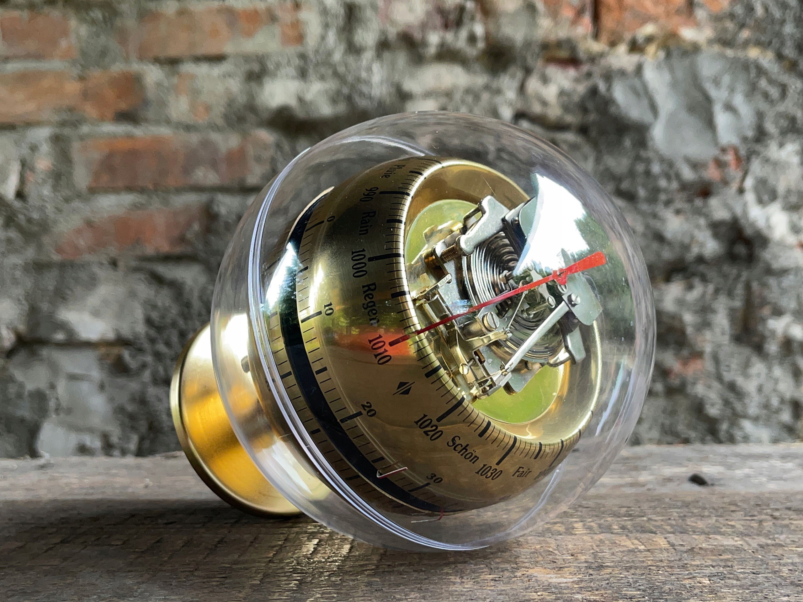метеостанція "Баріго" в старовинній атмосфері з 1970-х років з барометром, термометром, гігрометром, інтегрованим у корпус у формі кулі Plaxiglas. Барометр використовується для вимірювання атмосферного тиску і масштабується в гектотопаскосах, термометрі в ступенях Цельсія та Фаренгейта та гігрометра в відсотках. Дуже декоративна метеостанція, безумовно, приверне увагу багатьох членів домогосподарств. Висота - 19 см, діаметр кулі -14 см .. можливість вийти з договору до 14 днів.