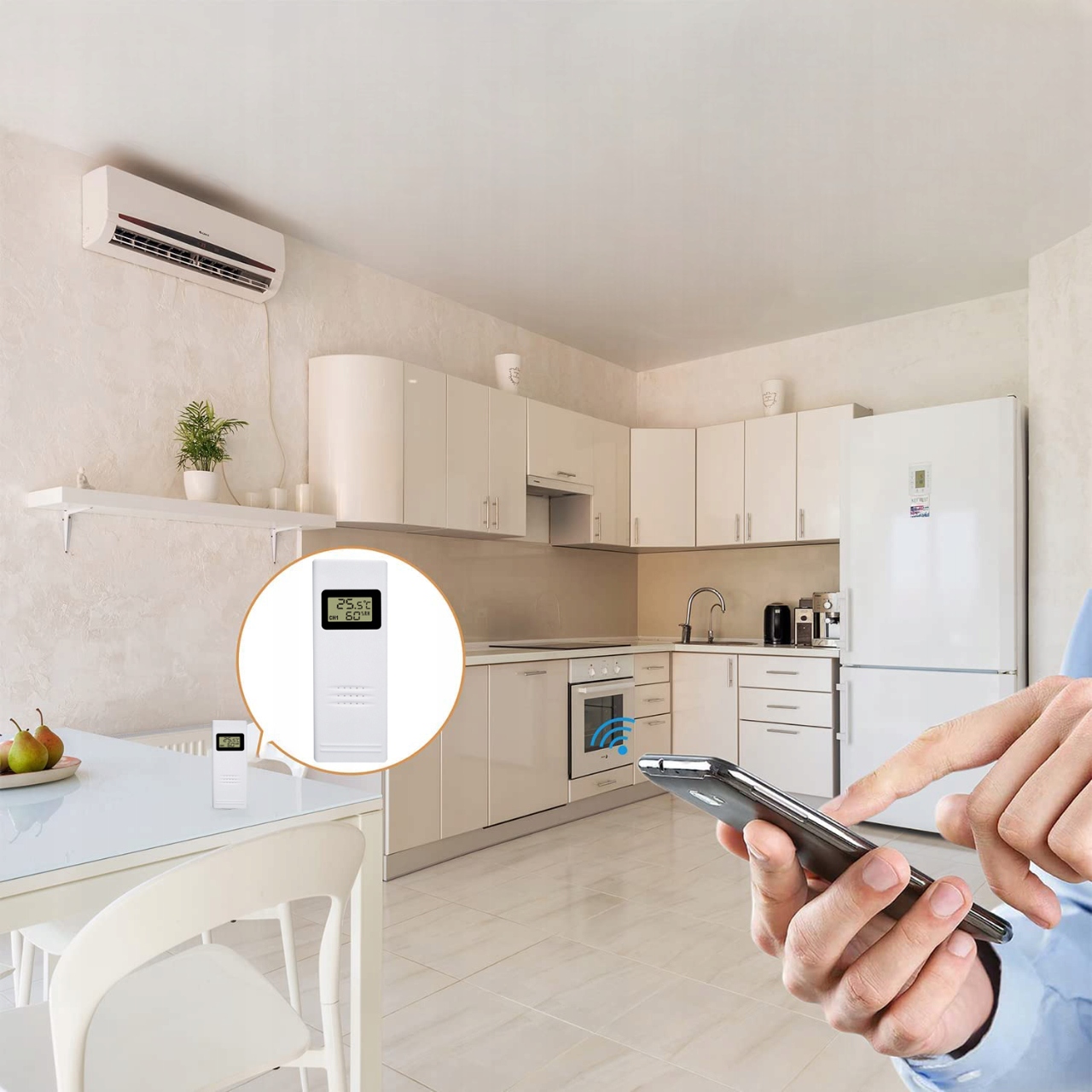 Завдяки бездротовій функції термометр позбавляє від необхідності використовувати кабелі, що допомагає впорядкувати корисний простір. Просто розмістіть датчик на вулиці, наприклад, за вікном або на балконі, щоб отримати показання зовнішньої температури. Цей бездротовий метод роботи забезпечує зручність використання та простий моніторинг погодних умов без необхідності використання кабелів чи складних установок.