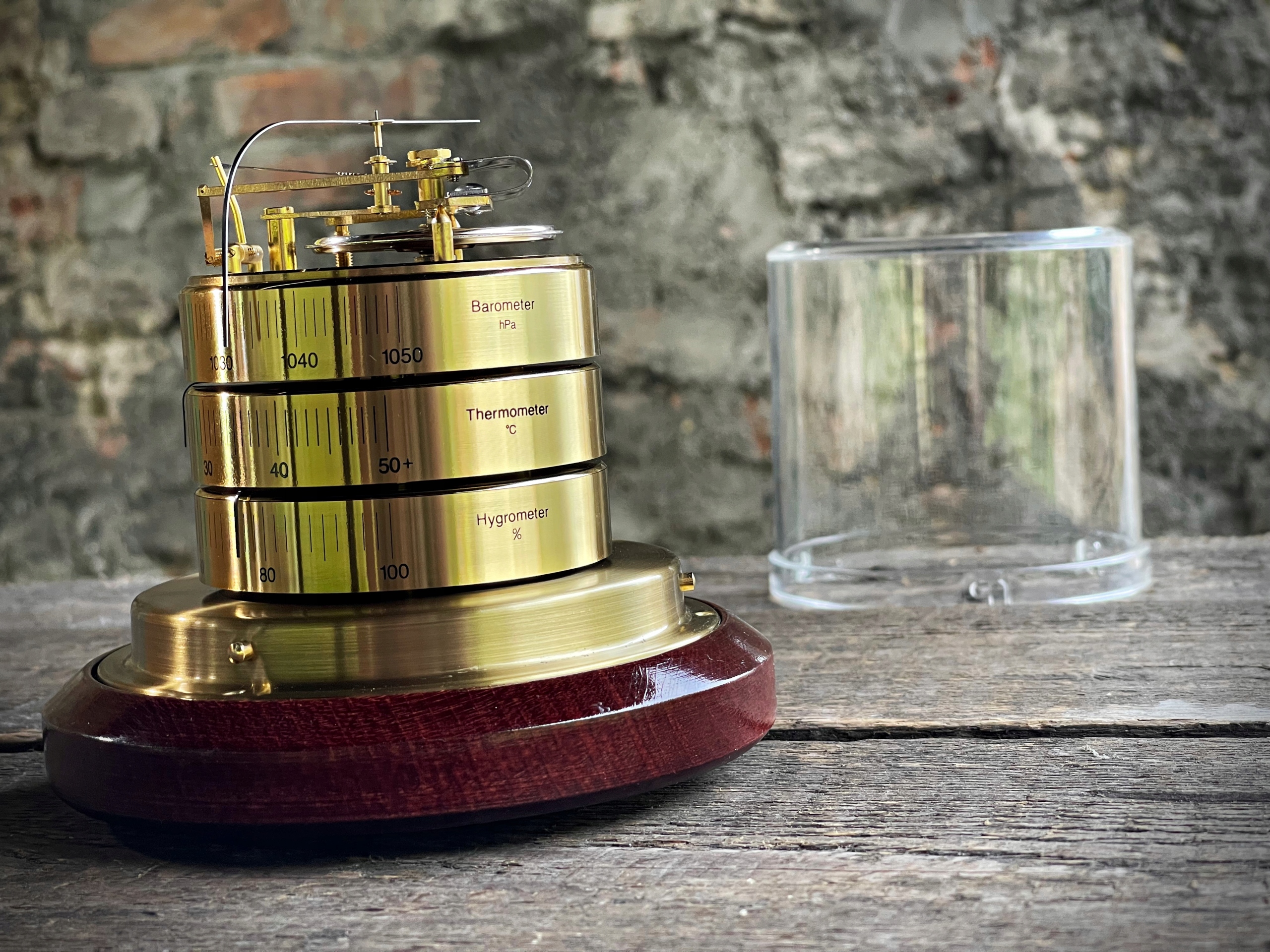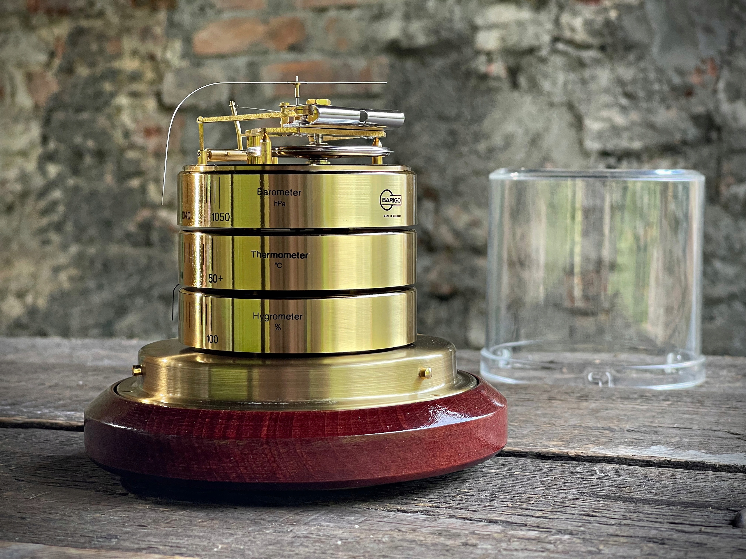 Метеостанція Баріго. Прилад оснащений термометром, гігрометром і барометром, усі вони розміщені на дерев’яній основі та покриті куполом з оргскла. Усі індикатори дуже чутливі після перевірки та калібрування. Діаметр основи 13 см, висота 13 см. Метеостанція дуже декоративна та оригінальна, привертає увагу та чудово доповнить будь-який інтер'єр. Гарантія відмови від договору до 14 днів.