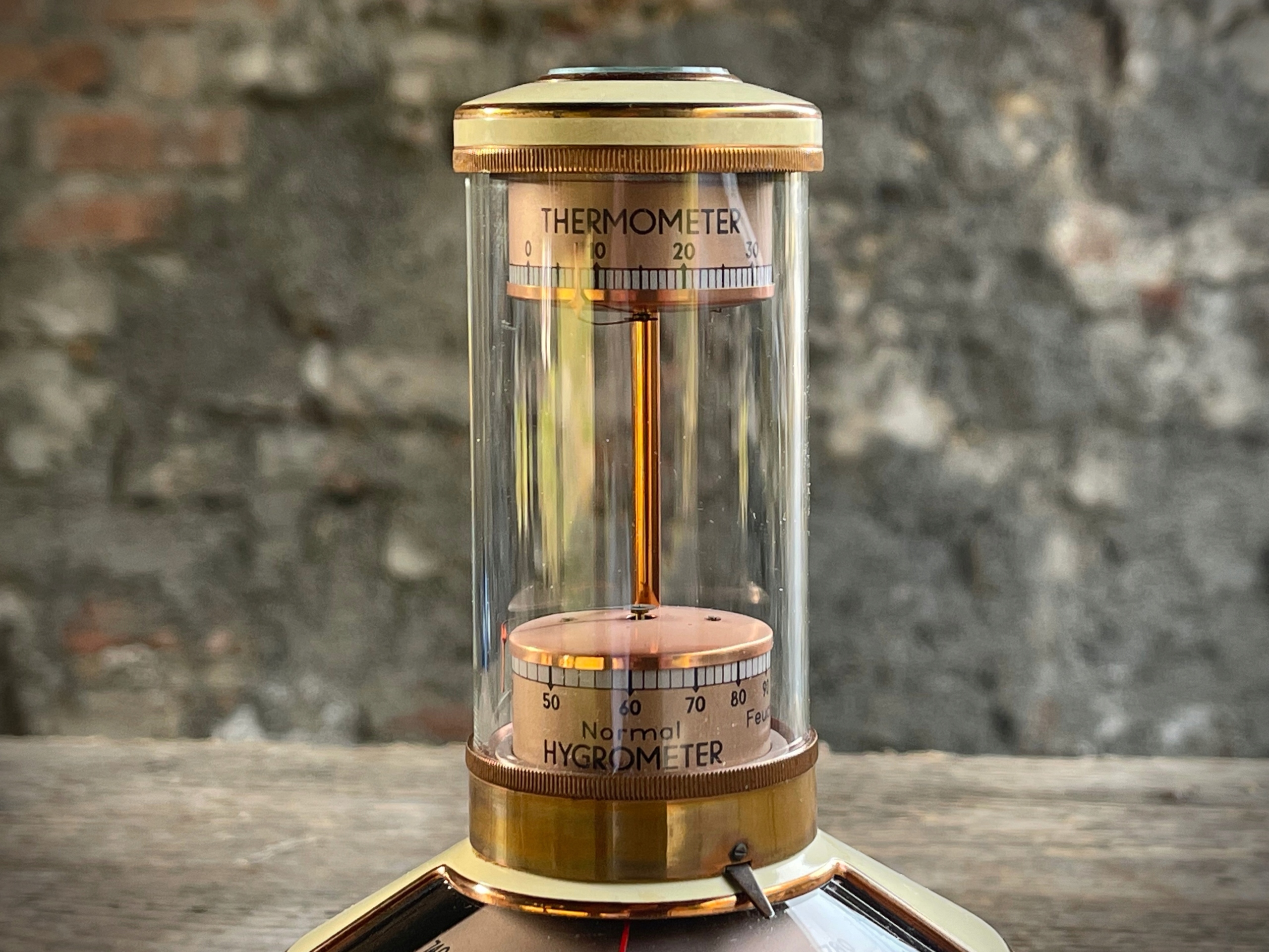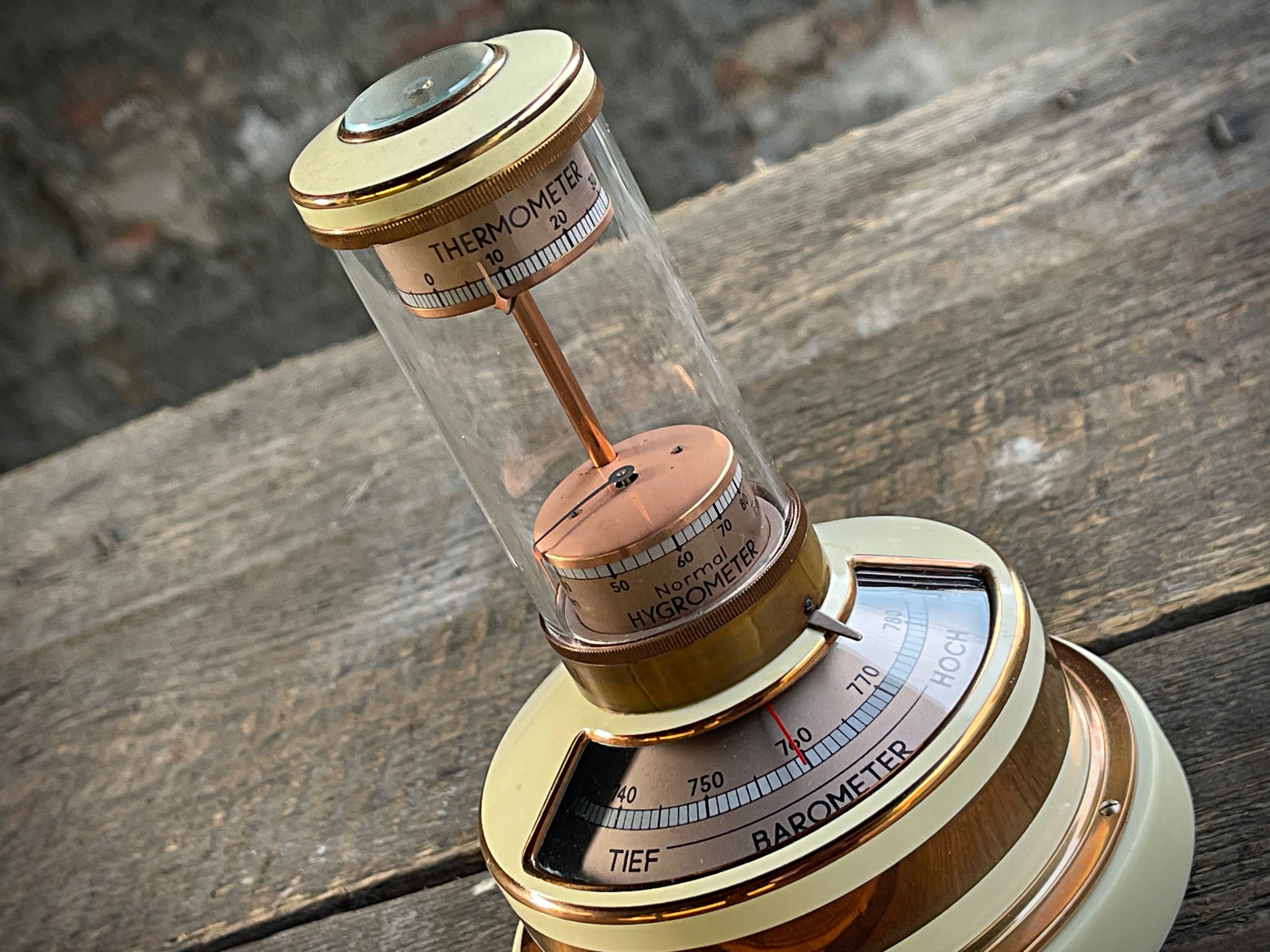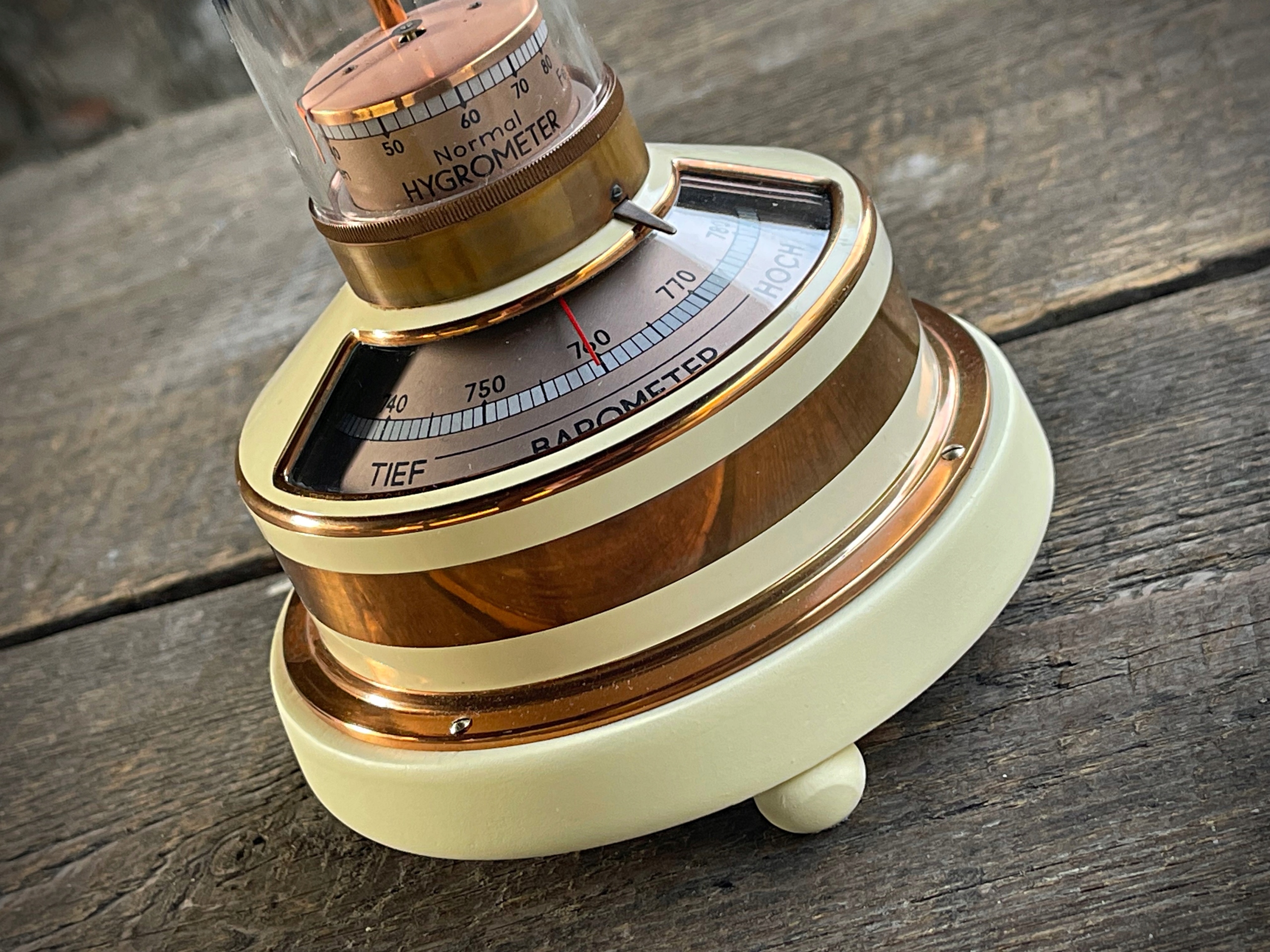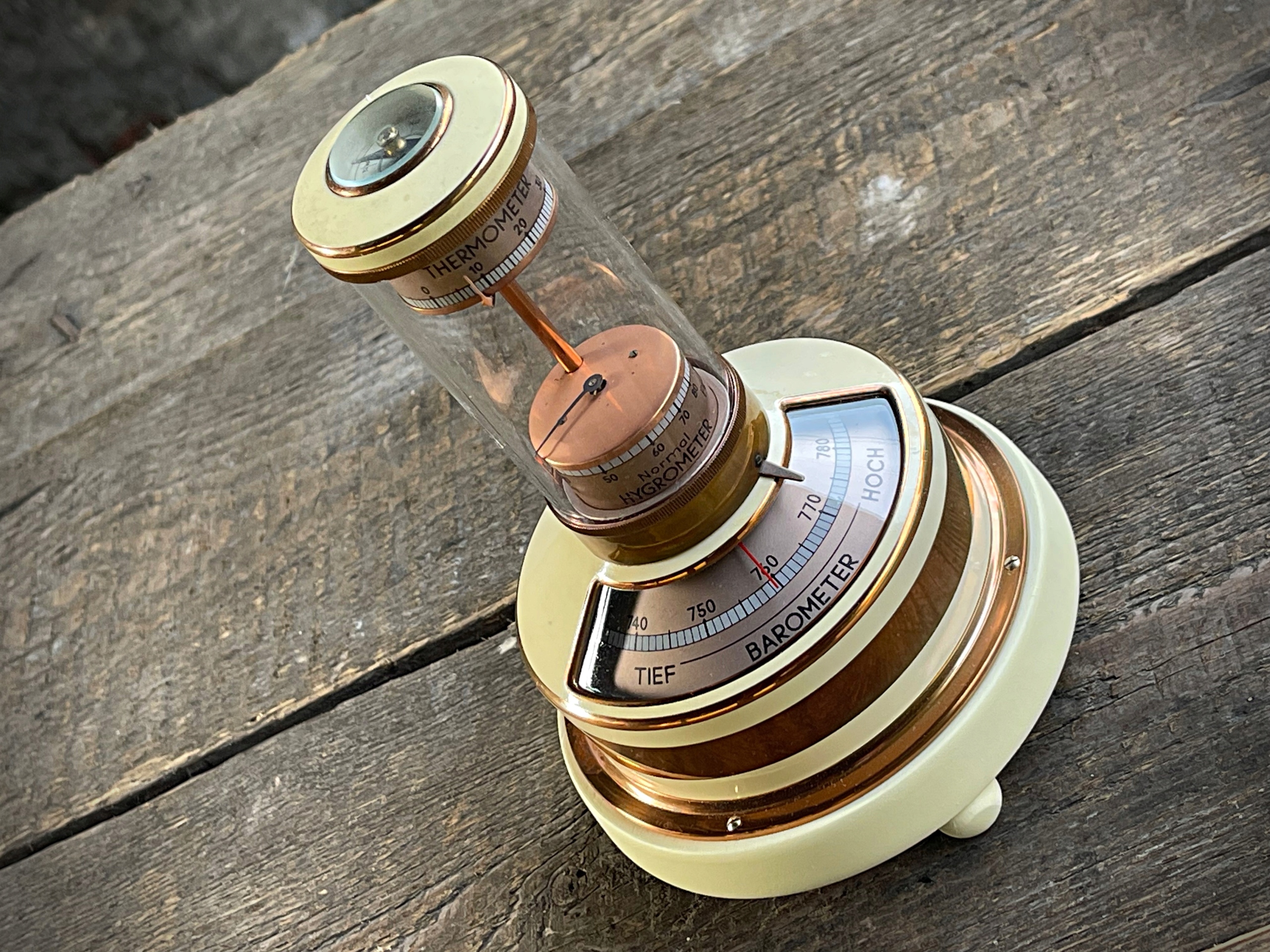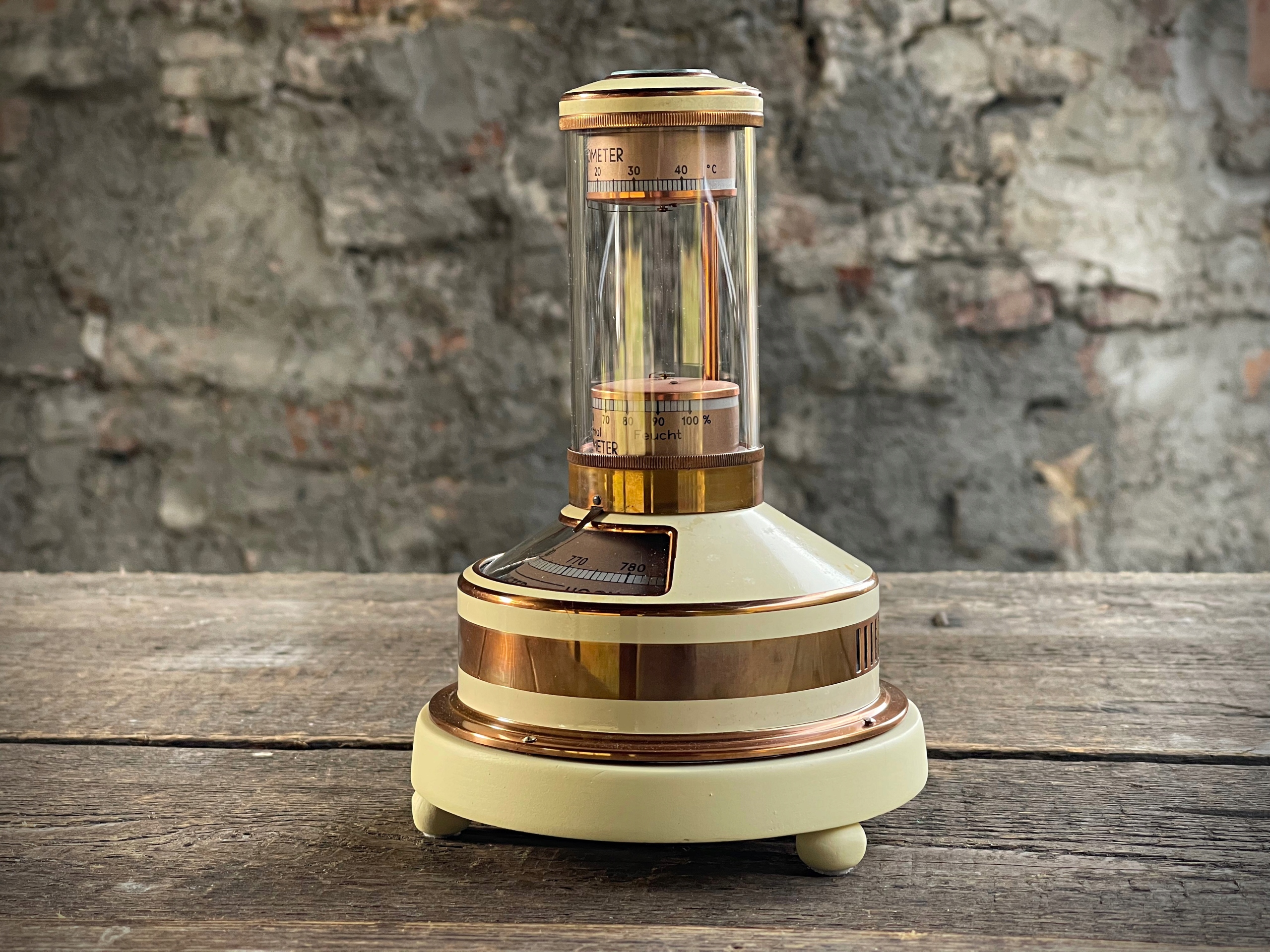 метеостанція стовпчики "lufft" з барометром, термометром та гігрометром, і все це розміщено в латунному корпусі, увінчаному компасом і розміщений на дерев’яній основі. Метеостанція Lufft у старовинному кліматі виглядає надзвичайно вражаючим, безумовно, буде ідеальним доповненням до будь-якої квартири, офісу, офісу тощо. Висота- 18 см, базовий діаметр- 12 см. Можливість відмовитися від договору до 14 днів.