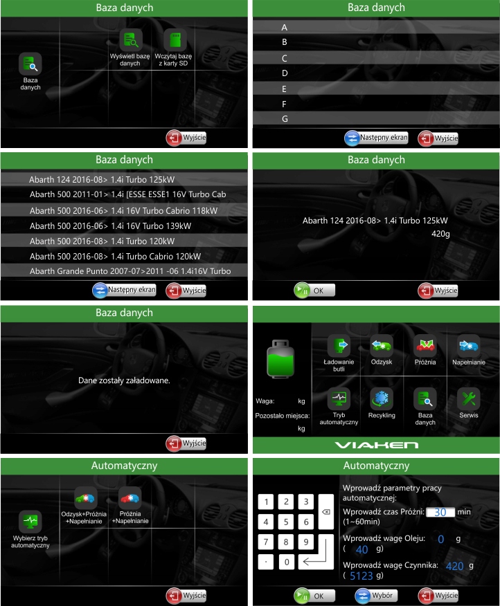 Містить технічну інформацію щодо кількості холодоагенту, оснащеного пристроєм для зчитування карток SD УВАГА! Лише оригінальний Viaken має польську мову та актуальну базу даних