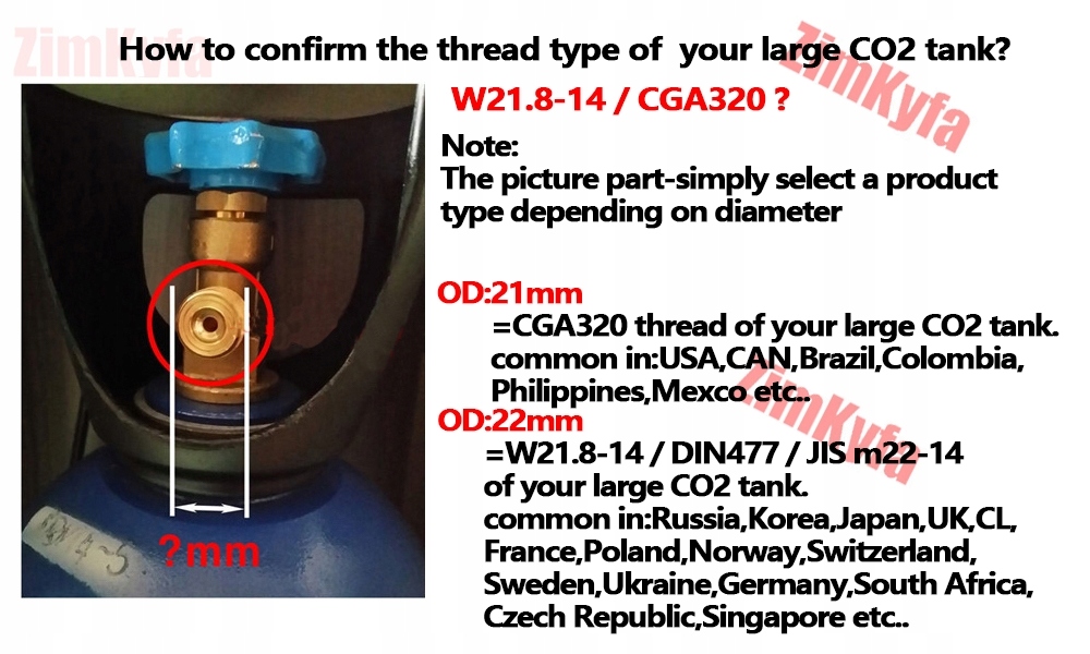 роз'єм для великого танка CO2: W21.8-14 (DIN477); Нитки CGA320.