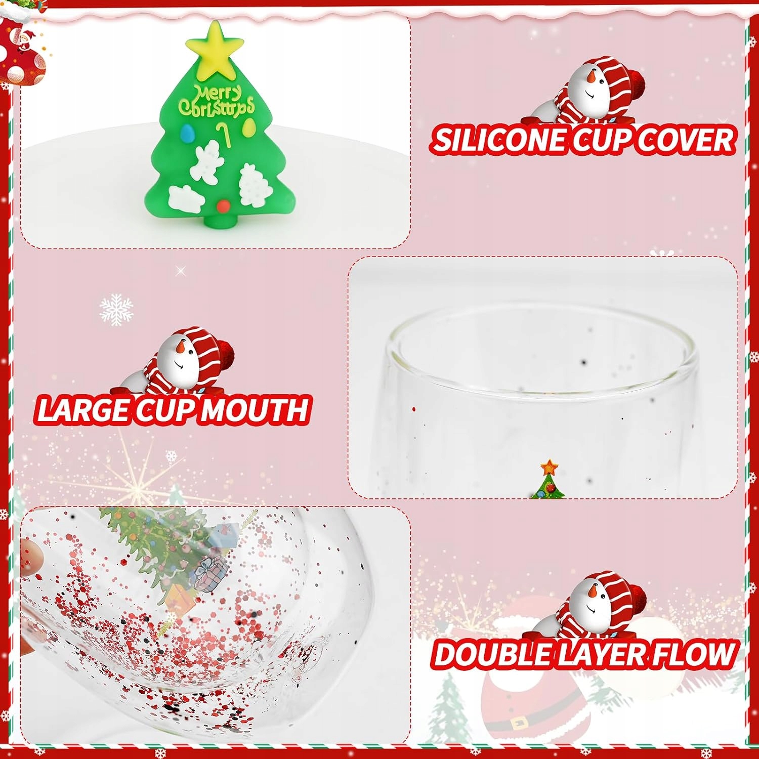 Скляна чашка з подвійними стінками та новорічною ялинкою всередині ✨