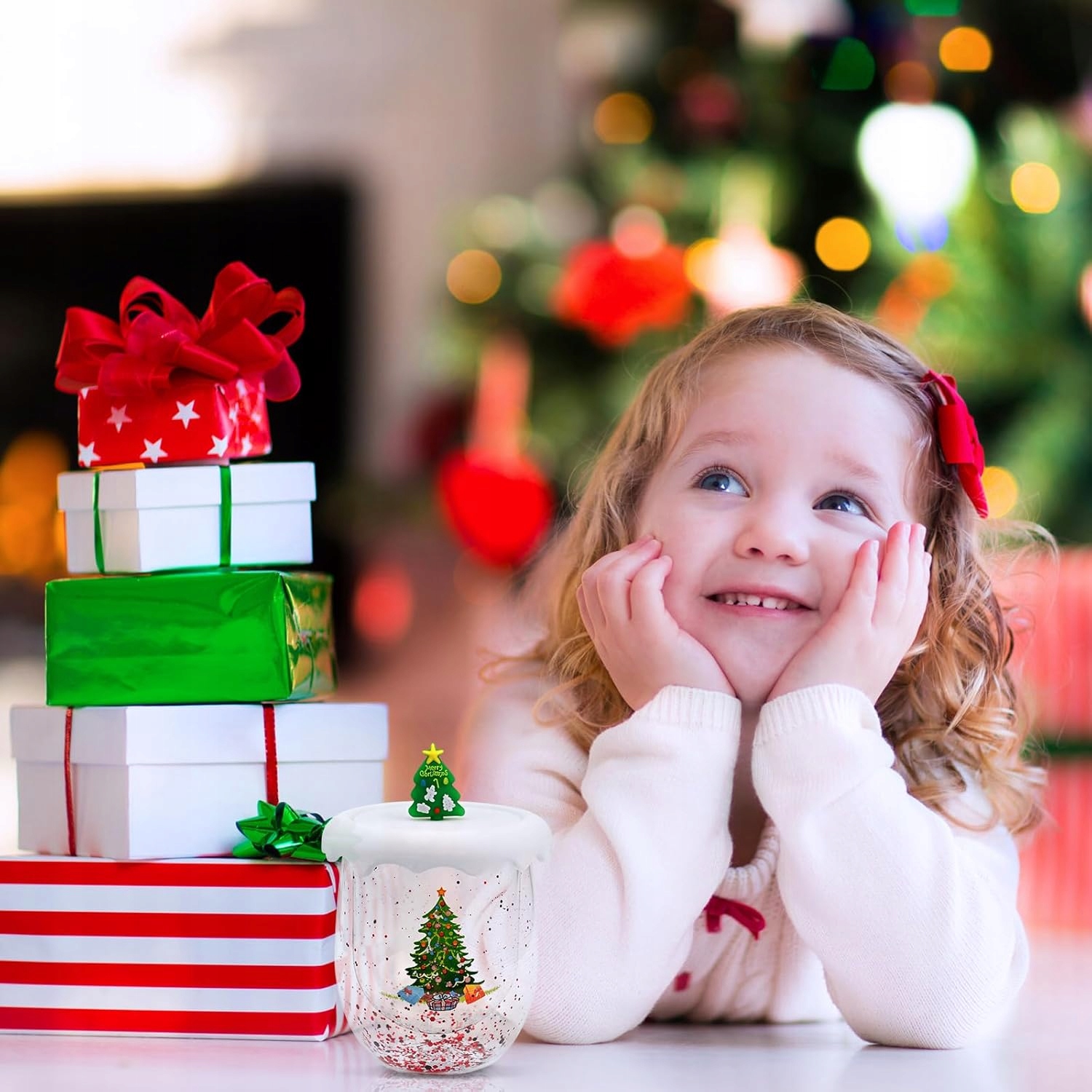 Ця унікальна чашка радує своїм внутрішнім декором у формі ялинки та різнокольорових конфетті, створюючи чарівний ефект під час вживання улюблених напоїв ☕❄️. Подвійні стінки забезпечують комфорт використання та гарно підкреслюють святковий характер чашки.