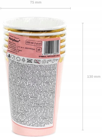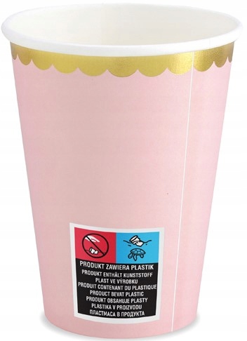 ✔️ Стакани паперові "Golden Border", світло-рожеві, PartyDeco, 220 мл, 6 шт