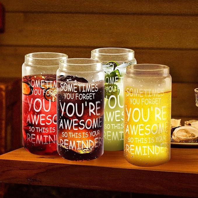 - Пакет включає: ви отримаєте 4 стакани у формі банки об’ємом 16 унцій, включаючи 4 бамбукові кришки, 4 багаторазові скляні соломинки, 2 щітки для чищення та 1 щітку для чищення чашок все упаковано в коробку. Скляні келихи класичного стилю, прості та вишукані, ідеальні для різноманітних напоїв.