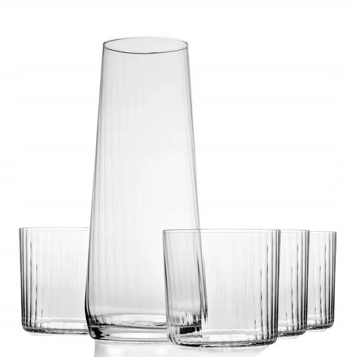Набір характеризується практичною, простою формою та вертикальним гофруванням. Скло легке, зручне, не містить свинцю та інших важких металів. Їх можна мити в посудомийній машині, а ідеальний блиск підкреслює елегантність набору.