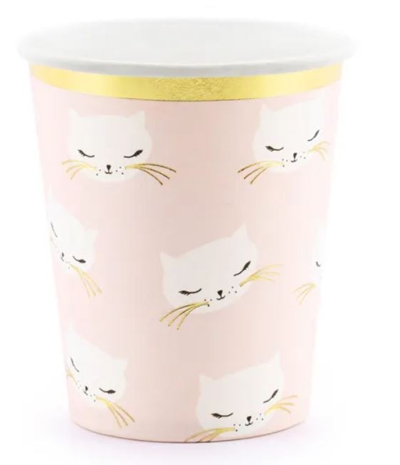 СТАКАНКИ ПАПЕРОВІ КОШЕНЯ КІТ РОЖЕВЕ ЗОЛОТО 6шт PD