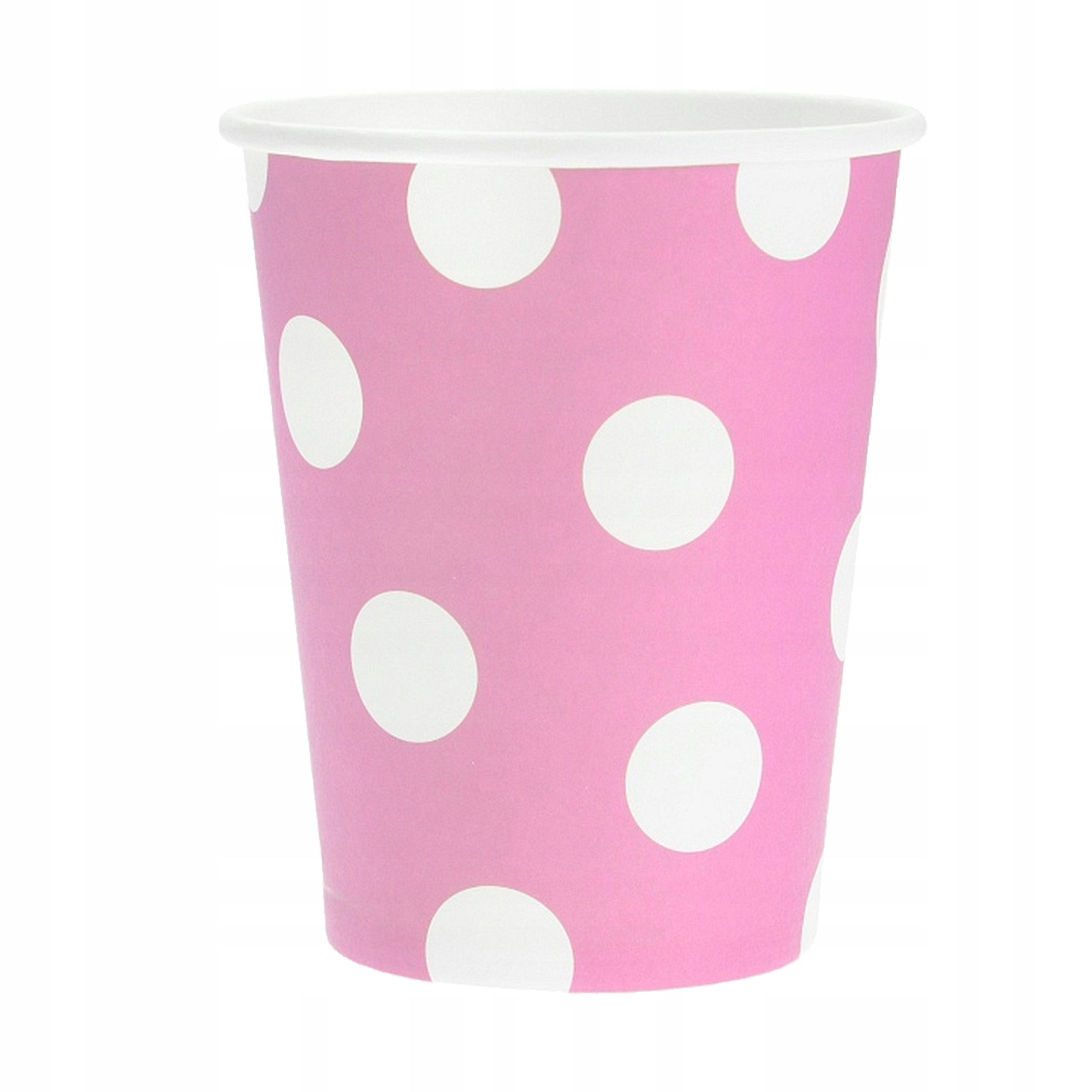 Паперові стаканчики рожевого кольору в білий горошок.