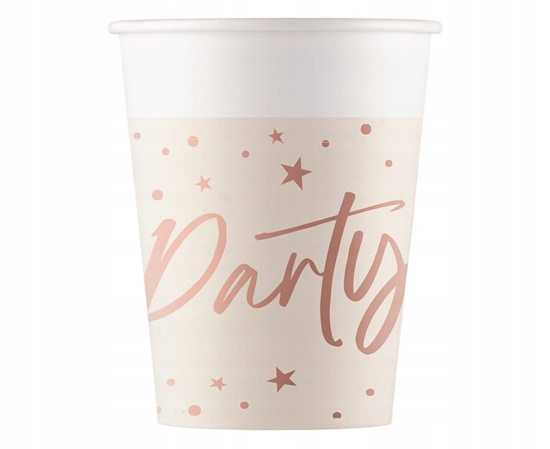 Чашки мають місткість 200 мл, що робить їх придатними для подачі напоїв та інших закусок під час вечірок. Набір містить 8 чашок, що забезпечує однорідне та елегантне оформлення столу, ідеальне для різноманітних вечірок та випадків. Паперові стаканчики рожевого золота з написом «Party» і золотими зірочками — ідеальний вибір для тих, хто шукає ефектне та стильне рішення для вечірки. Їх елегантний дизайн і практичність зроблять кожну подію унікальною та чарівною.