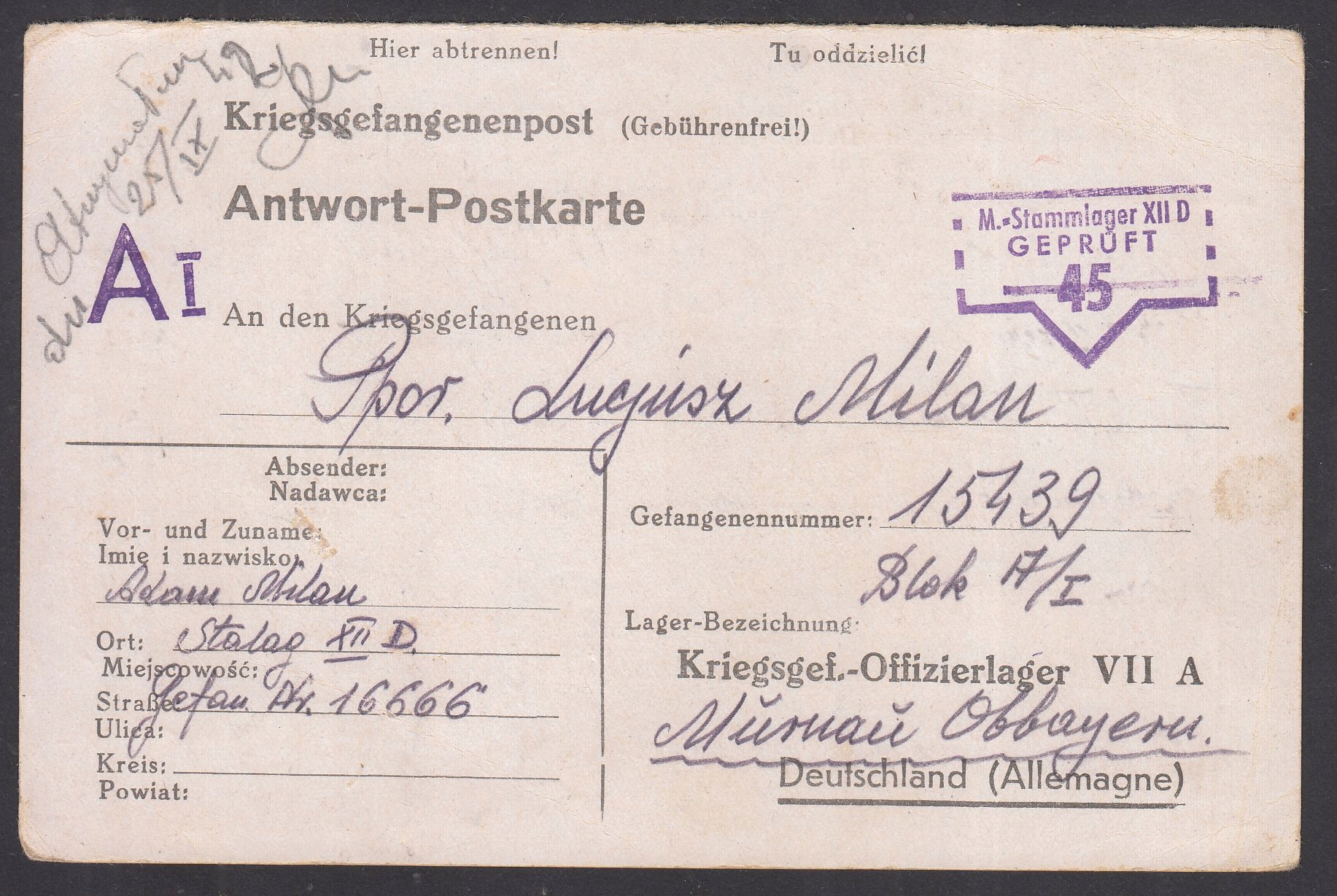 Stalag XIID Trier Oflag VIIA Murnau card from camp to camp 1942 (196)
