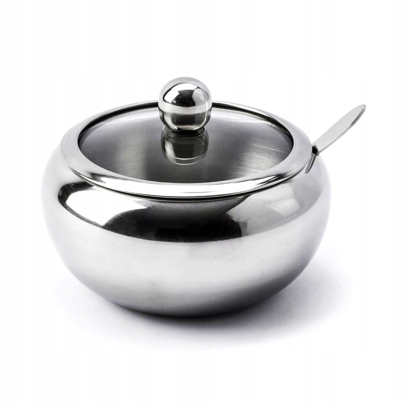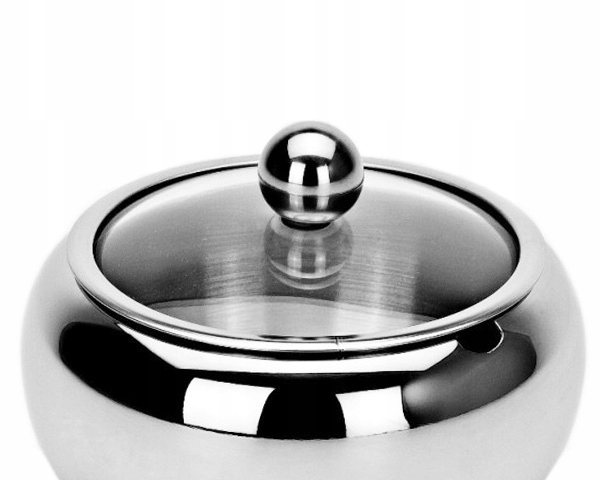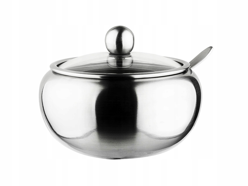 СТАЛЕВА ЦУКОРНИЦЯ ЗІ СКЛЯНОЮ КРИШКОЮ + ЛОЖКА
