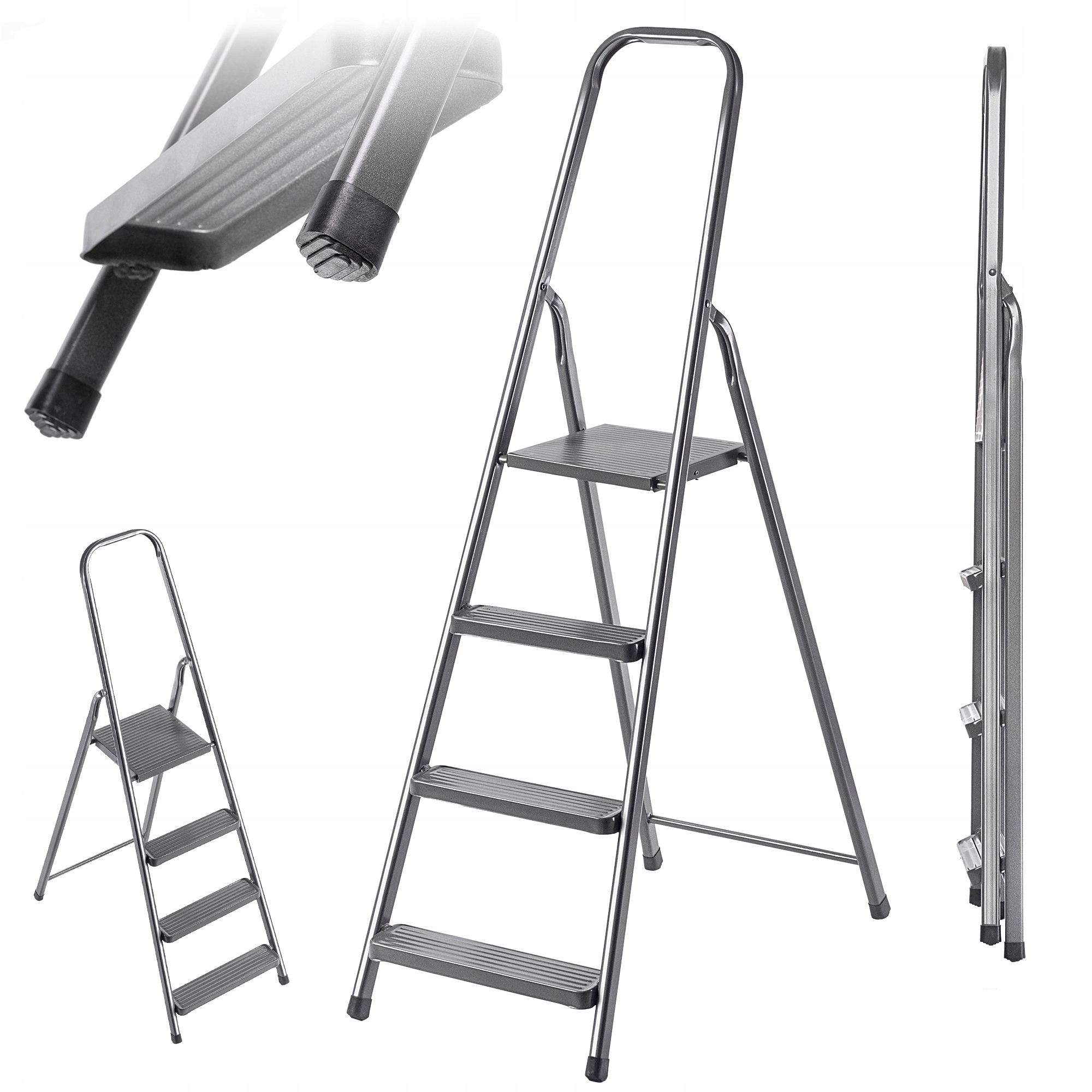 4✅ комфорт та безпека використання - широкі, зубчасті кроки та пов'язка на голову на верхній платформі збільшити комфорт та захистити проти ковзання. Пластикові ноги додатково стабілізують сходи .