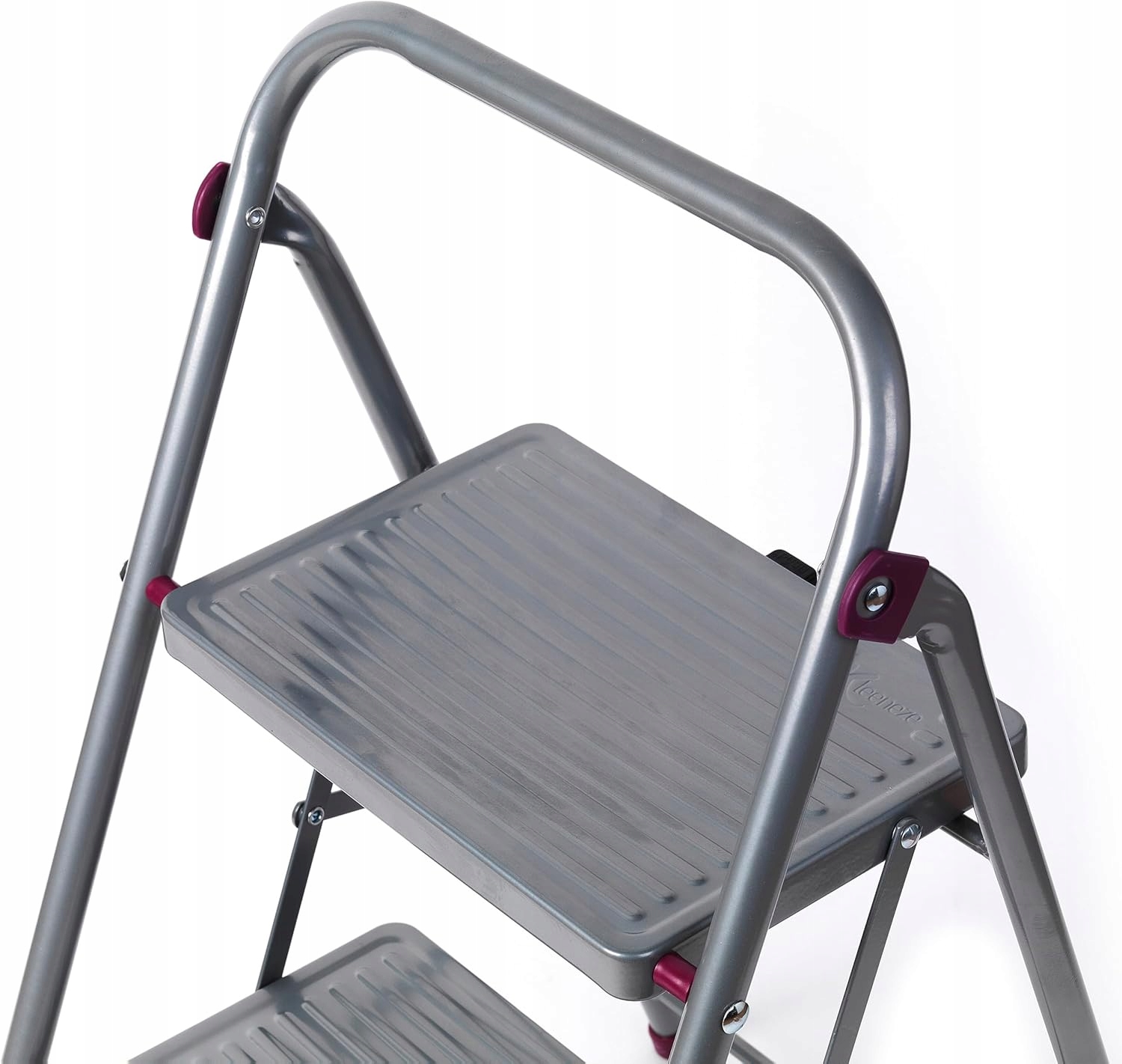 Конструкція драбини міцна та міцна, а засув запобігає випадковому складанню драбини, забезпечуючи повну безпеку.
