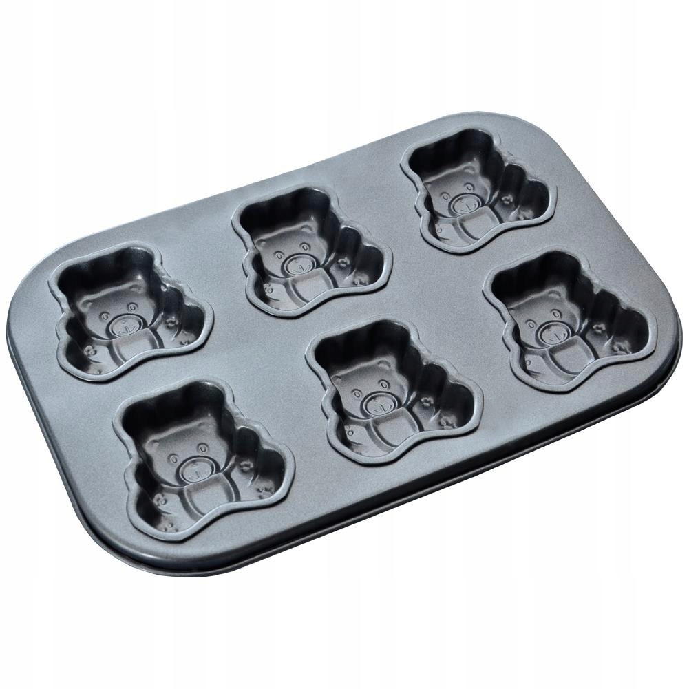 Форма для випічки печива з антипригарним покриттям. Форма дозволяє спекти шість мафінів або печива у формі ведмедиків. Ідеально підходить для приготування популярних запечених ведмедиків з солодкою начинкою. Корисний у кожному домі, його легко мити та зручно використовувати. Тісто не прилипає і легко витягується. Ідеальний для кожної мами, ми гарантуємо задоволення дітей. Виготовлений з безпечних для здоров'я та харчових продуктів матеріалів. Оригінальний продукт чеського бренду Orion. Виготовлено відповідно до європейських стандартів.