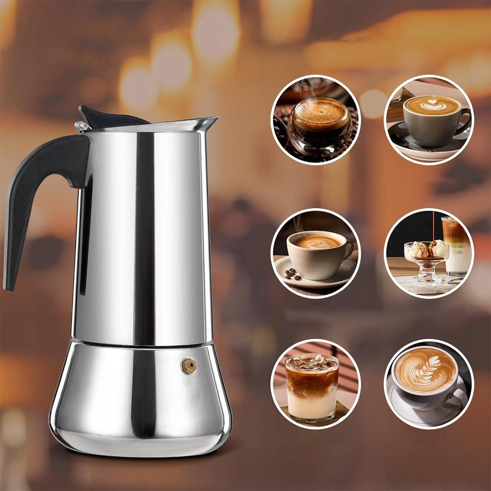 Еспресо-машина moka виготовлена з полірованої нержавіючої сталі, оснащена точною потрійною різьбою та міцним запобіжним клапаном, який забезпечує подвійний захист від надмірного тиску. Внутрішнє матове покриття не є алюмінієвим, а пройшло точну дробеструйну обробку, що покращує як естетику, так і довговічність.💪