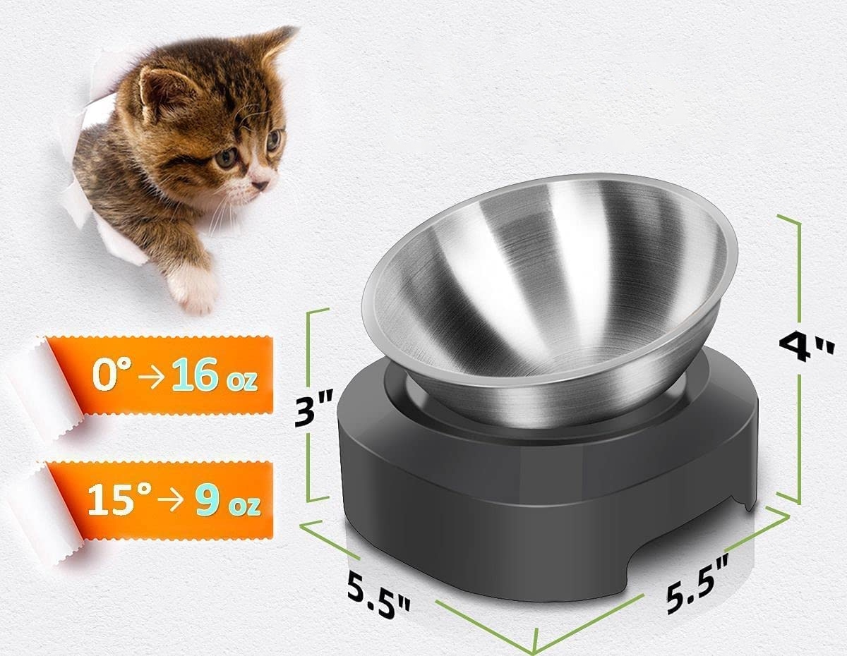 Сталева миска для котів з кутом нахилу 15° і протиковзкою основою