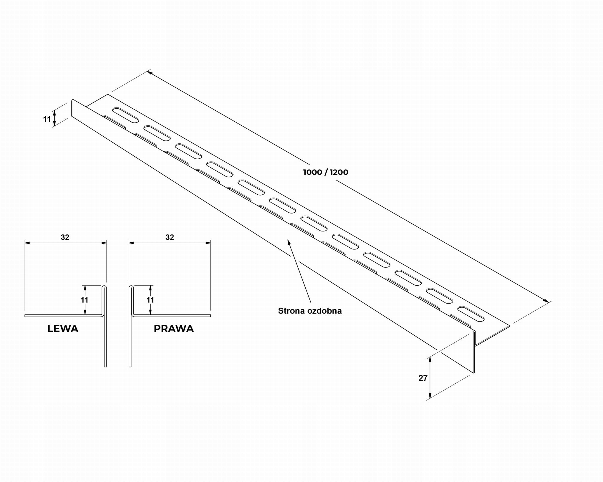 СТАЛЕВА НАПРАВЛЯЮЧА ДЛЯ 120 см НАХОЛОВ ПРАВ
