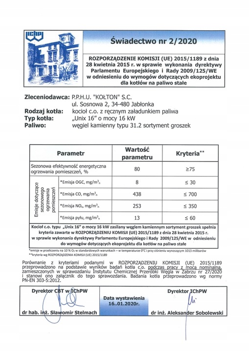 Сталевий водогрійний котел типу UNIX із сертифікатом екологічного дизайну призначений для живлення установок центрального опалення та приготування гарячої води. Газифікаційний паливний котел призначений для спалювання кам'яного вугілля, вугільного сортименту, зернистості 5-28 мм, має конструкцію з горизонтальним розташуванням факелів і водяної полиці, яка є основним елементом теплообмінника. Зручне наповнення, великі завантажувальні дверцята і камера згоряння сприяють ефективному спалюванню. Ці котли налаштовані на заводі для роботи з регулятором тяги (тобто не вимагають використання електроенергії).