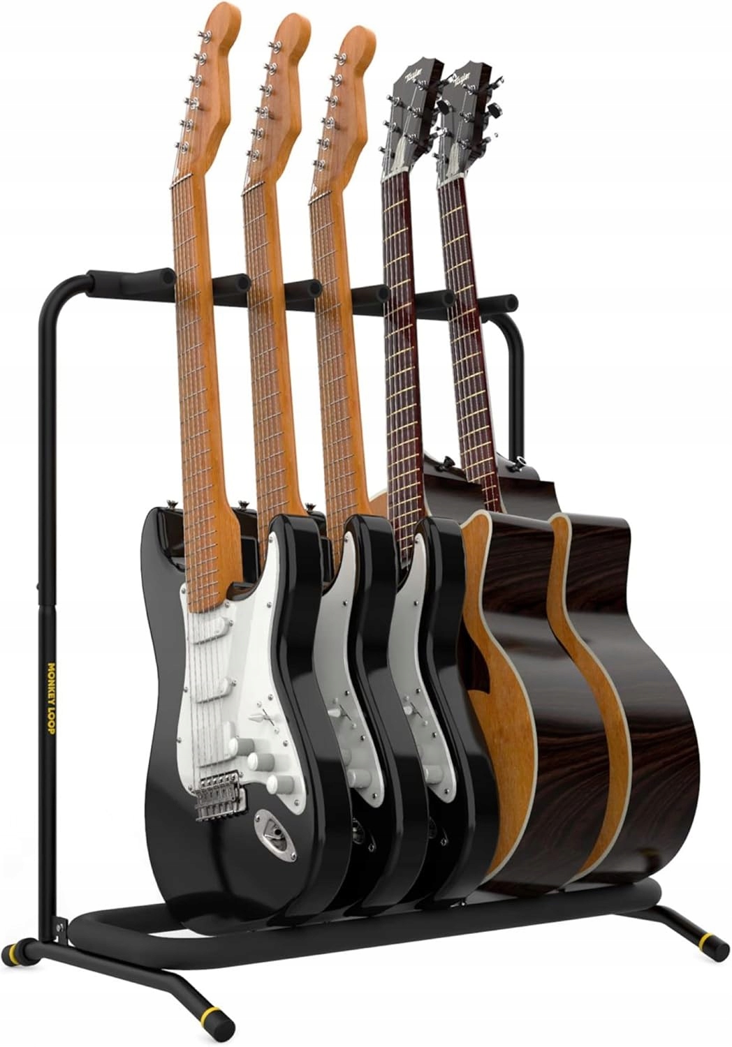 Гітарна стійка MONKEY LOOP Floor Prime Plus 5 — ідеальне рішення для музикантів, які хочуть професійно доглядати за своїми інструментами. Стабільна конструкція гарантує надійну підтримку до п’яти гітар, що дозволяє тримати їх завжди готовими до використання.