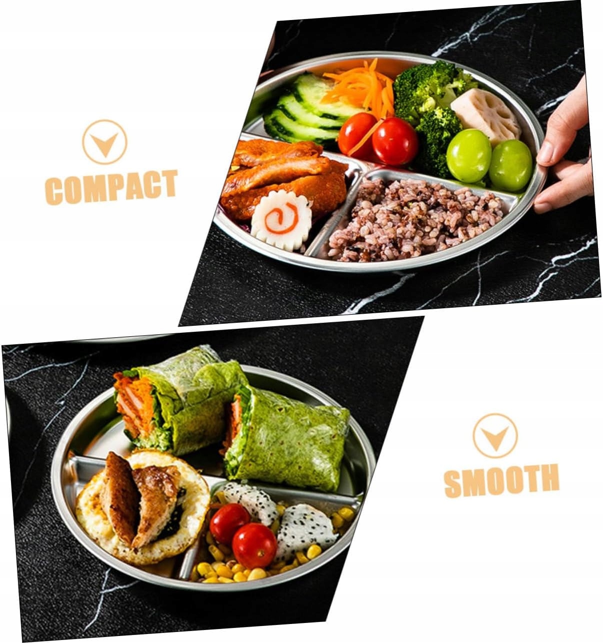 Сталева розділена тарілка з шкалу обіду, легкої для очищення 2 ПК.