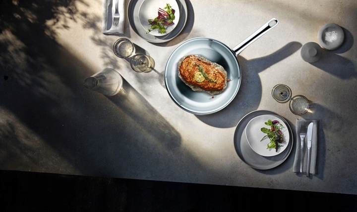 На сковороді можна приготувати багато страв, включаючи м'ясо, рибу та овочі. Посуд підходить для індукційних, газових і керамічних плит, а також для духовки. Це полегшує приготування улюблених страв на одній сковороді.